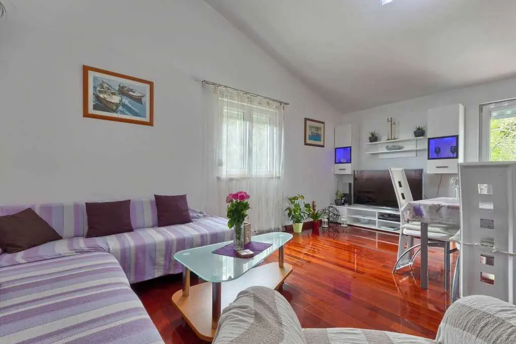 Közel a tenger, egy gyönyörű helyen, a fenyves erdő, van egy teljesen berendezett lakás rózsaszín. Roza Apartments egy valóban minden egy nagy nyaralás teljes csendet és nyugalmat. Apartman négy személynek. Modern bútorokkal, amely két hálószoba (mindkettő franciaággyal), nappali, étkező, teljesen felszerelt konyha, fürdőszoba jacuzzival, terasz és 2 parkoló mjesta. Lakás teljes felülete 95 m2. Légkondicionált, plazma TV-vel és műholdas TV-vel. A lakás díszített kiváló minőségű anyagokból, hogy a nyaralás, mint kellemes. A strand található, kevesebb mint 100 méterre található, és el lehet érni a nyomvonalat a fenyves. A strandon lehet sétálni a sétány mentén a tenger Banjol Simple - ez a lakás mindent egy pihentető és idilli tengerparti nyaralást! Üdvözöljük!