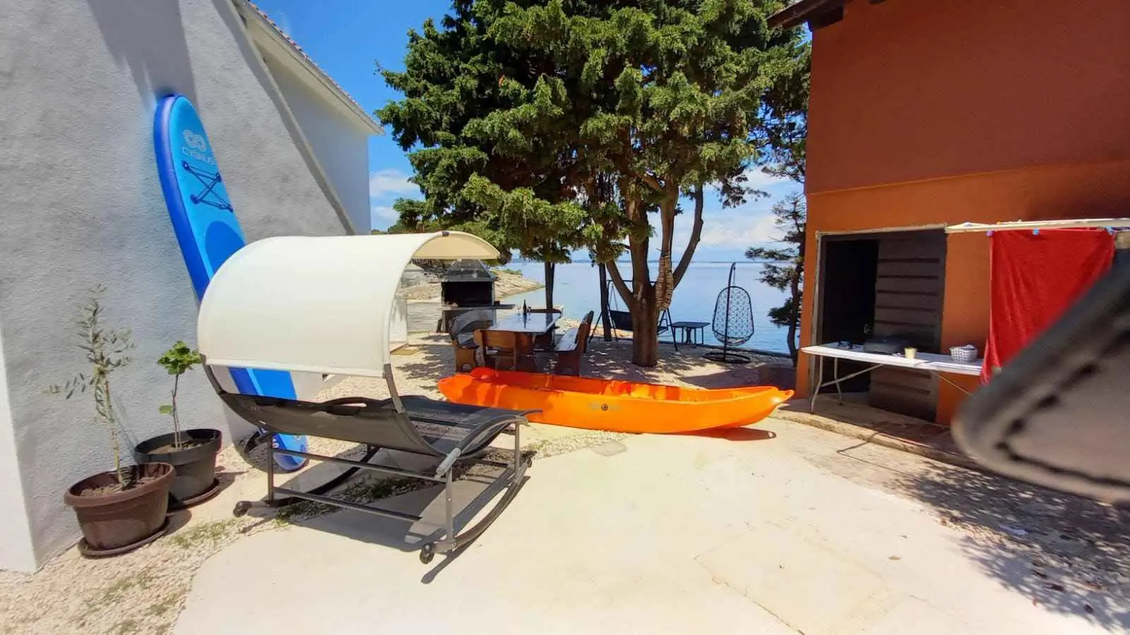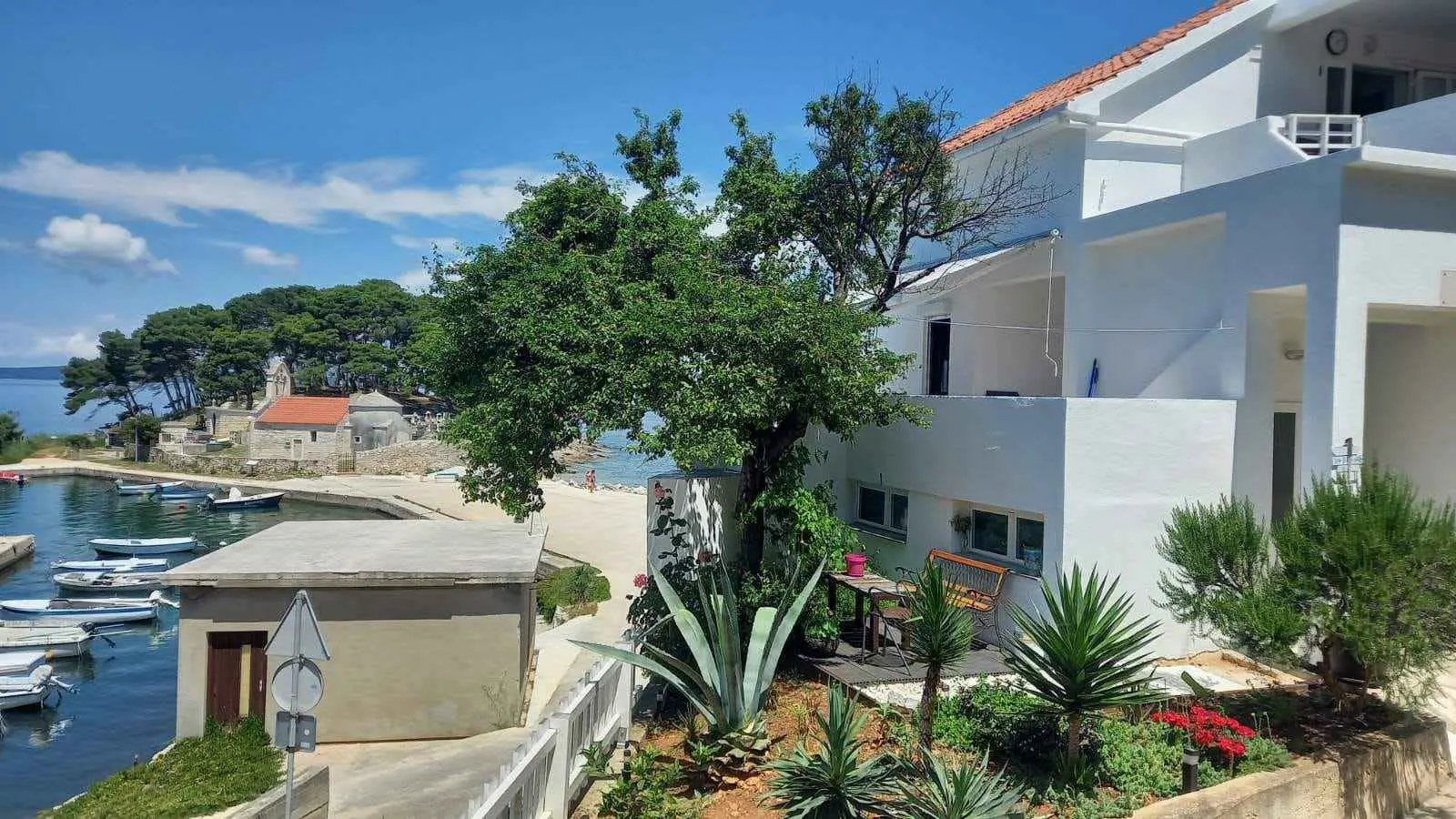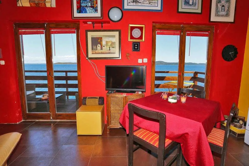 Az apartmanok közvetlenül a tenger mellett helyezkednek el, gyönyörű kilátással a tengerre. Az egyik házban 2 apartman található, amelyek maximum 6 fő elszállásolására alkalmasak, a másik házban pedig egy 2 fős garzonlakás található. Kérésre kikötés a hajóhoz. Minden apartmanban van internet (wi-fi). A két nagyobb apartmanba házi kedvenceket is bevihetünk! 2 személyes kajakot és SUP deszkát bérelünk.