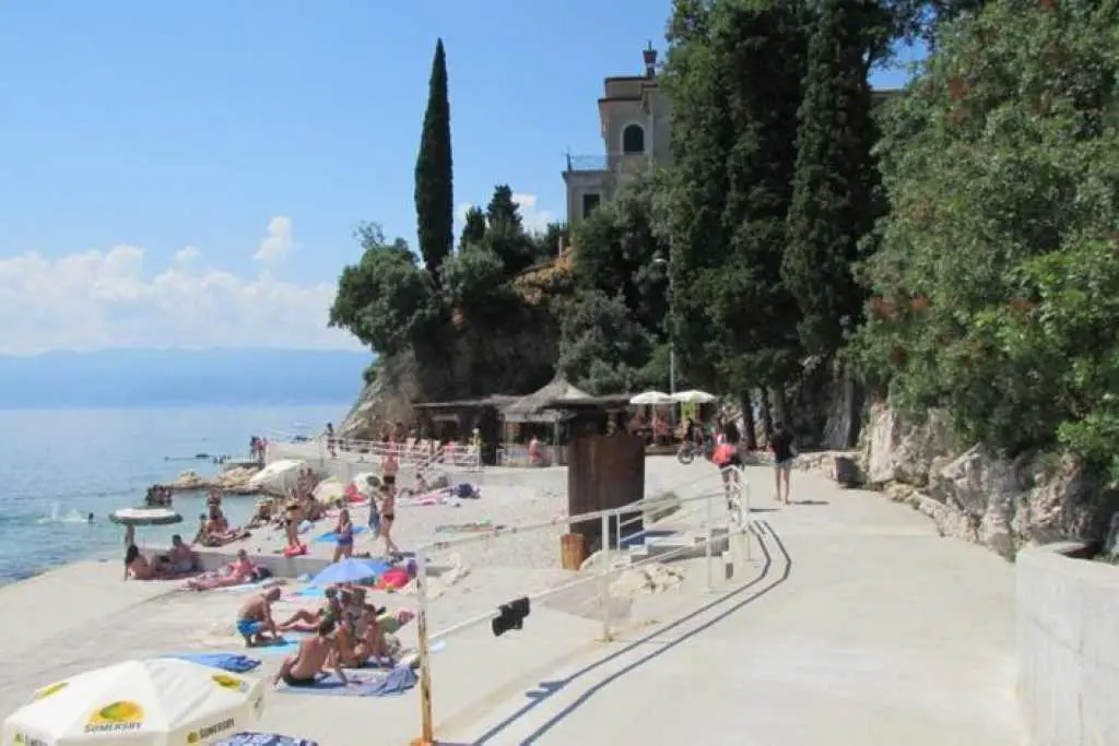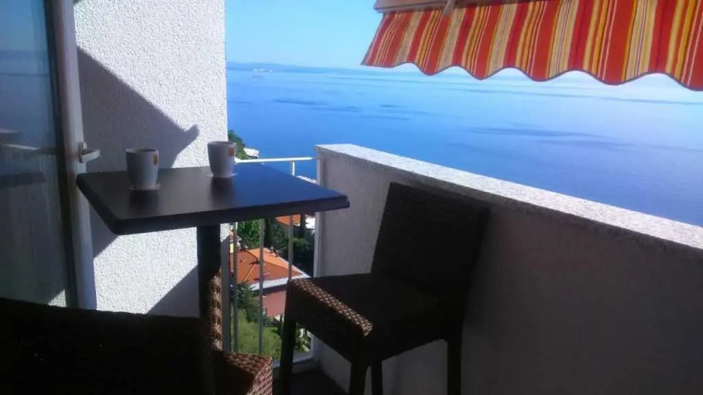 59 m2-es apartman Rijeka központjának közelében, közel a strandokhoz, tömegközlekedéshez. Nyilvános parkoló az épület előtt. A felújított apartmanban egy hálószoba, fürdőszoba, kamra, étkezős konyha és egy kis erkély található, valamint egy nappali terasszal, ahonnan panorámás kilátás nyílik a tengerre, a szigetekre, a városra és a közeli hegyre. Az apartman 4 fő elszállásolására alkalmas, hiszen a nagy nappali kanapéján ketten aludhatnak. A konyha teljesen felszerelt (hűtő, tűzhely, sütő, mosogatógép, mikrohullámú sütő, kávéfőző, vízforraló). A lakás légkondicionált, az egyik klíma a nappaliban, a másik a hálószobában van. Mosógép is rendelkezésre áll. Személyesen várjuk a vendégeket, és igyekszünk megválaszolni kérdéseiket, olyan tartalmakat ajánlani, amelyeket mi magunk is szeretünk. Az apartman a város keleti részén, közvetlenül a városi strandok felett, a bevásárlóközpont közelében található. A városközpont nagyon közel van, pár perc sétával elérhető. Nagyon vonzó elhelyezkedés, kiváló közlekedési kapcsolat.