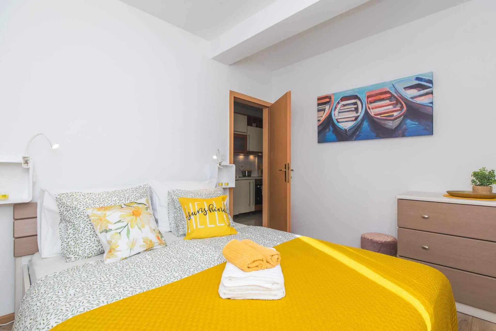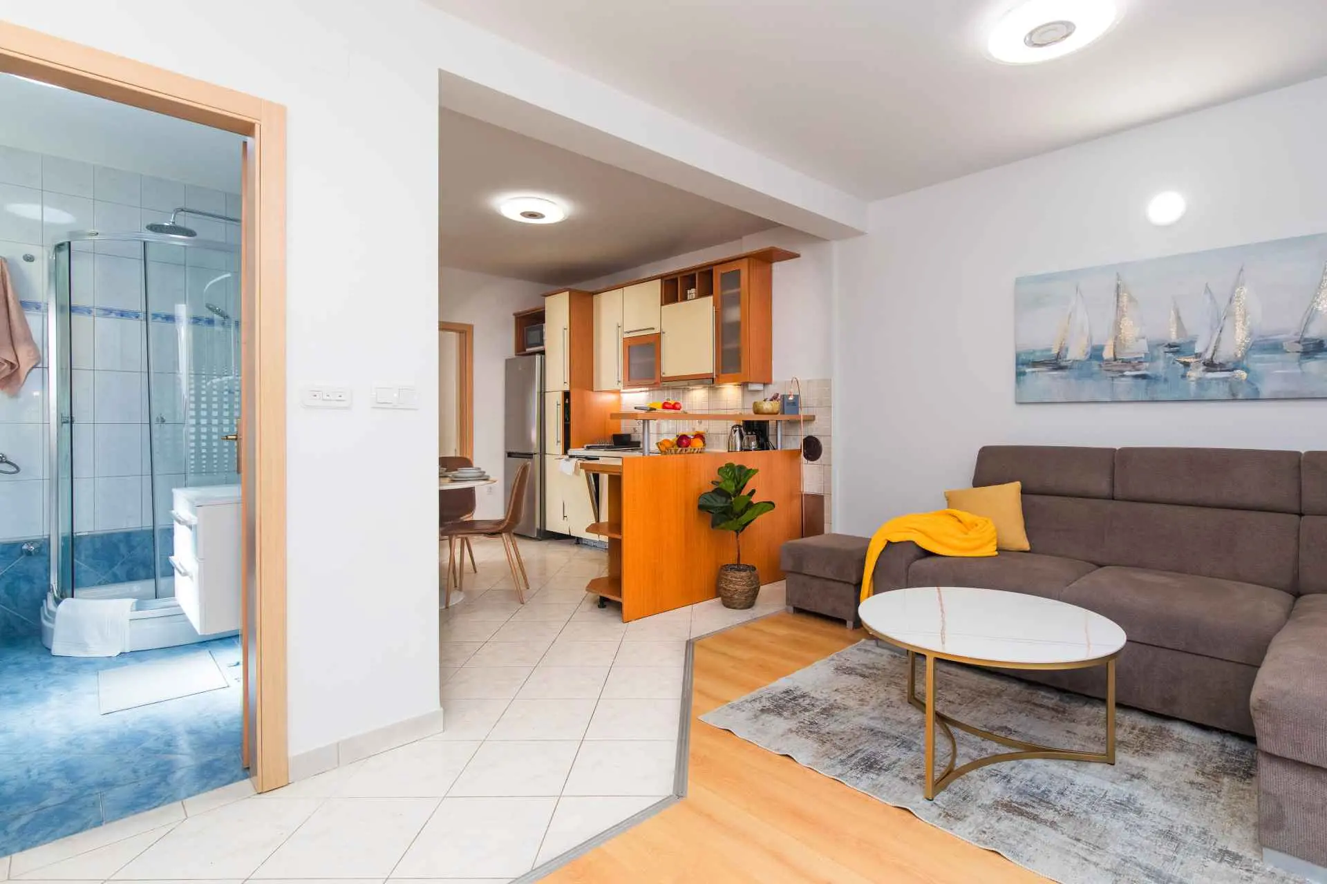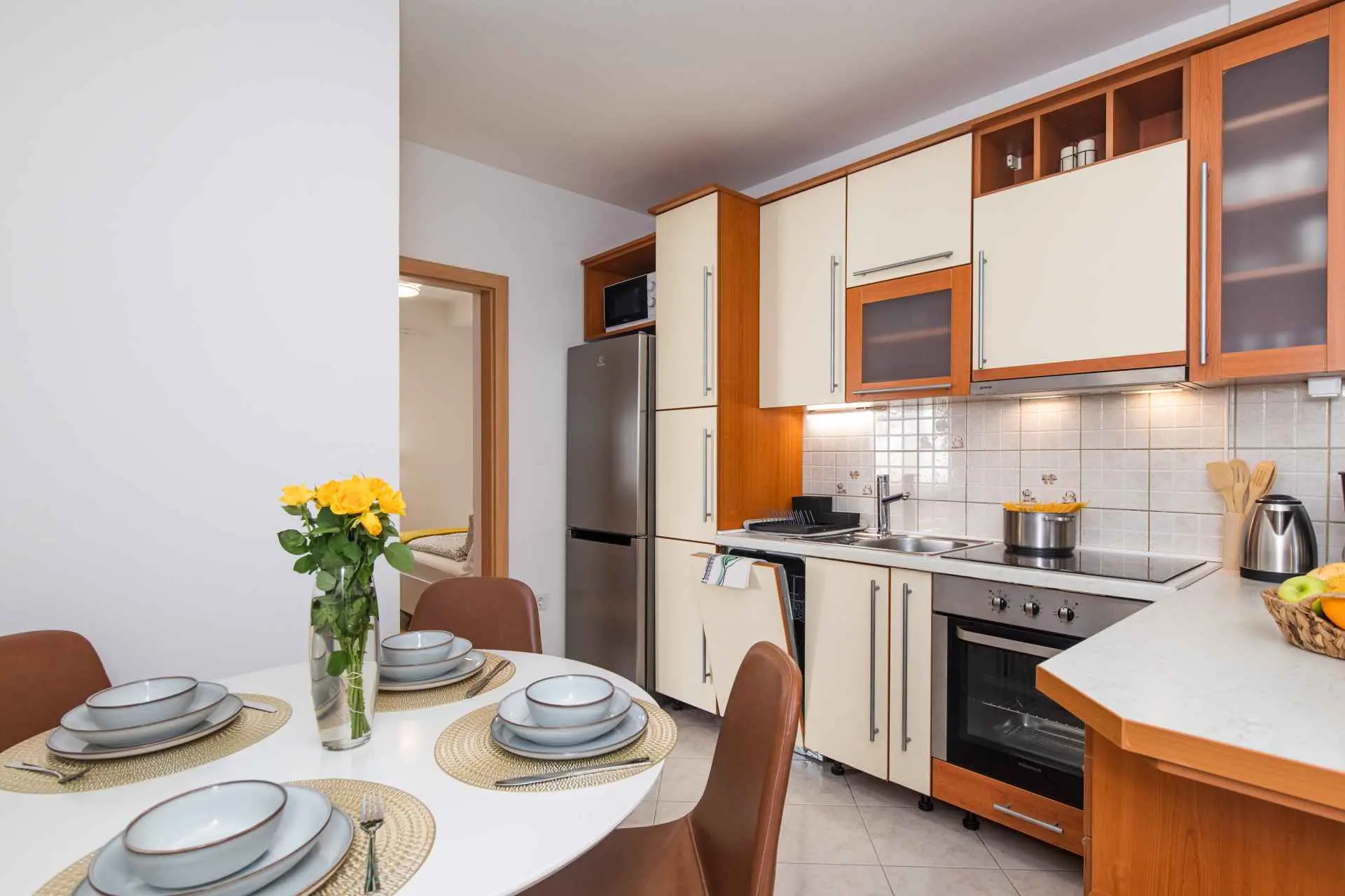 Szeretettel várjuk gyönyörűen berendezett és teljesen felszerelt apartmanunkban, amely akár 4 fő részére is alkalmas, csendes környéken, mégis közel mindenhez, amire egy kellemes tartózkodáshoz szüksége lehet. Az apartman két kényelmes hálószobával (ideális családok vagy baráti társaságok számára), teljesen felszerelt konyhával étkezővel, nappalival és zuhanyzós fürdőszobával rendelkezik. Tágas terasz áll rendelkezésre reggeli kávézáshoz vagy esti pihenéshez grillezővel, valamint saját parkoló - ingyenes és közvetlenül az ingatlan mellett. Várjuk érkezését!