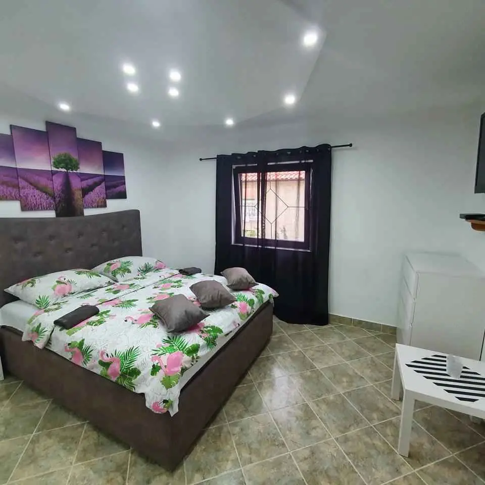 A ház Njivice csendes részén található, Krk szigetén, 500 m-re a tengertől, és nagyon alkalmas családi nyaralásra. Gyerekek számára különösen alkalmas, mert van játszótér és hinták. A ház előtt az idegen kerítésben van egy nagy parkoló, hogy az autója biztonságban legyen. Egy nagy kert és egy terasz is rendelkezésre áll, ahol grillezésre és egész napos árnyékolásra nyílik lehetőség. Az apartmanokban hálószoba franciaággyal, konyha minden szükséges felszereléssel, légkondicionáló, nappali, 2 személyes kanapé, fürdőszoba, erkély és LCD TV található. A konyha teljesen felszerelt (tűzhely, mosogató, mikrohullámú sütő, hűtőszekrény fagyasztóval, vízforraló, kávéfőző). Az apartmanokhoz saját terasz vagy erkély is tartozik asztallal és székekkel a pihenéshez.