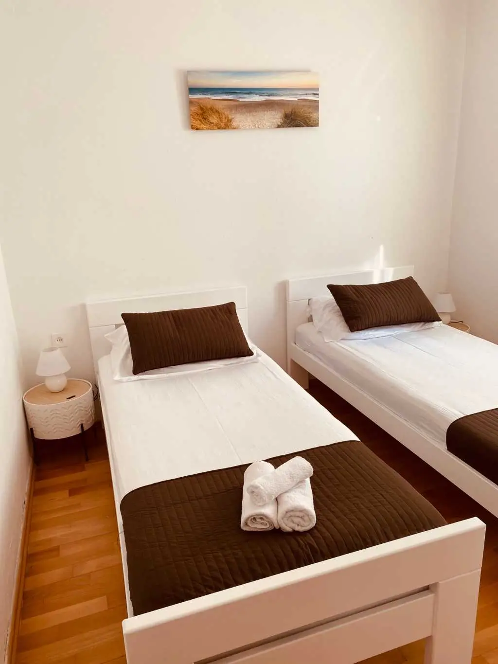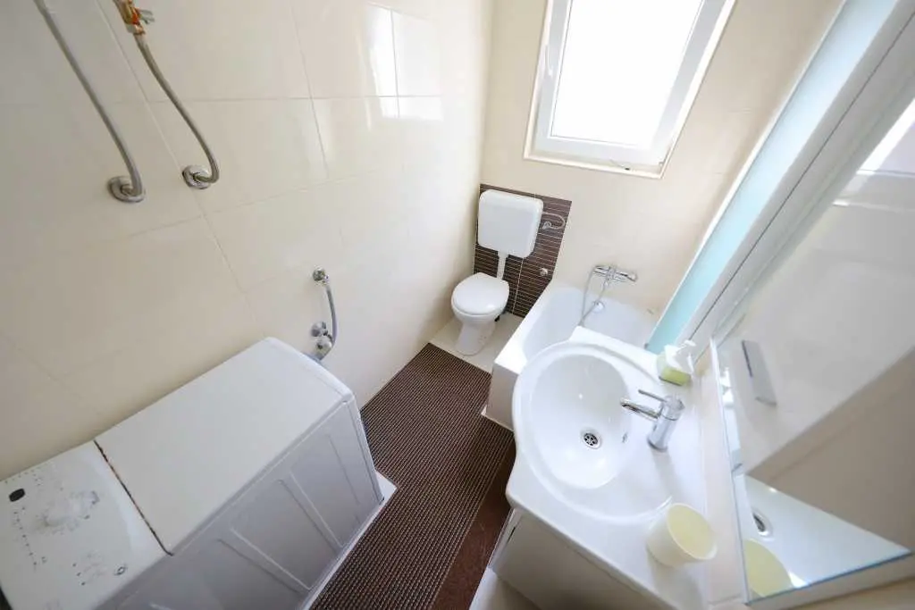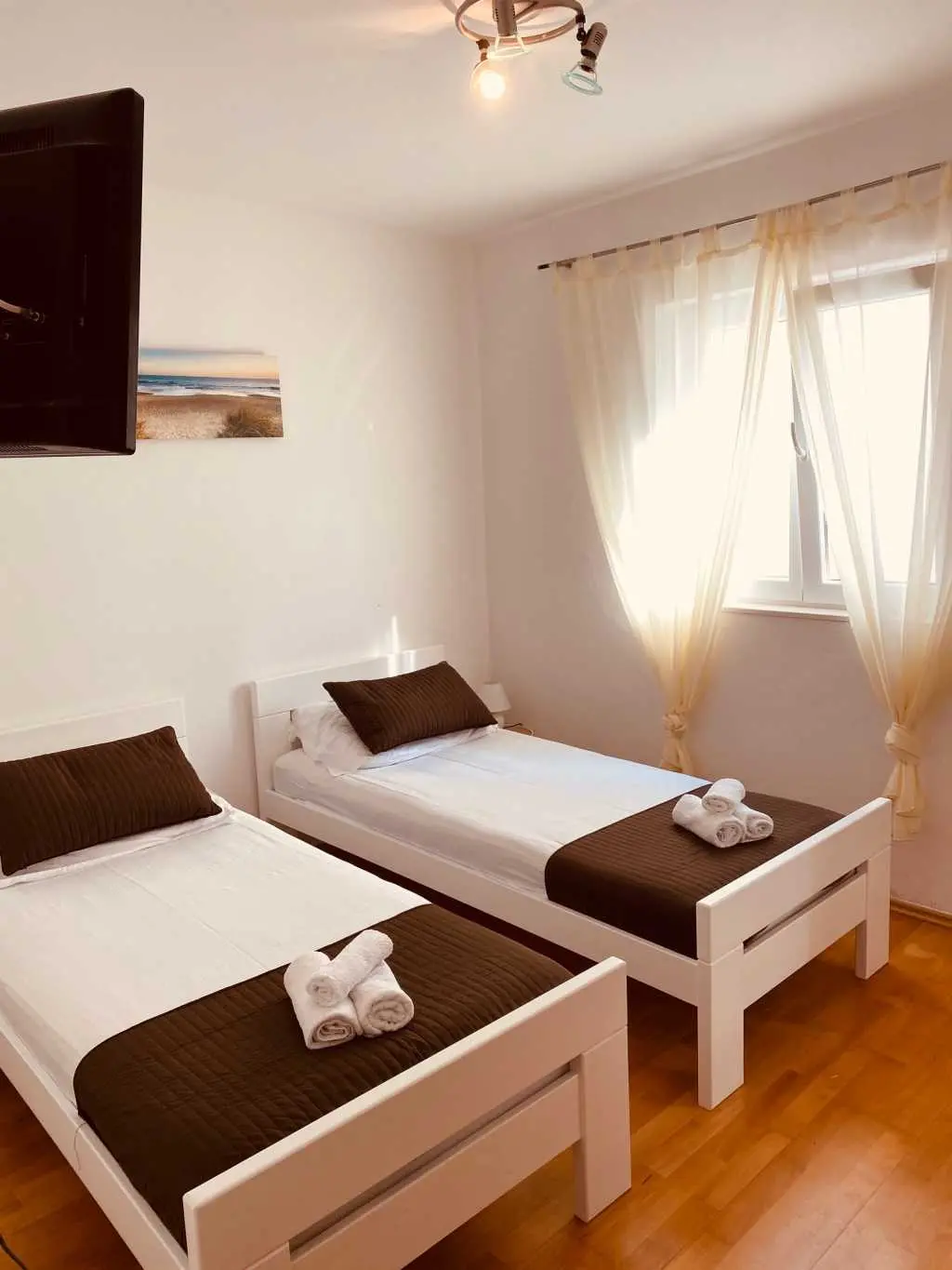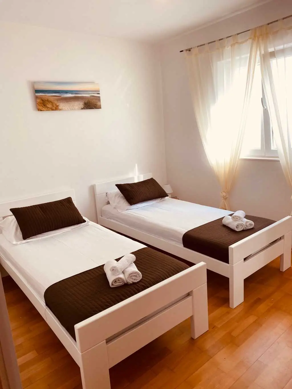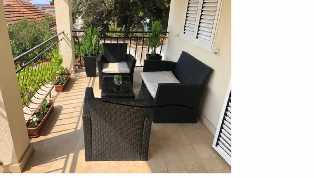 Szép és kényelmes apartman, 100m, 3 hálószoba, 2 fürdőszoba, konyha, nagy nappali és tengerre néző terasz. Ideális pihenésre. Wifi ingyenes. Dohányzás megengedett. Háziállat hozható. Második sor a tengertől. Predložite