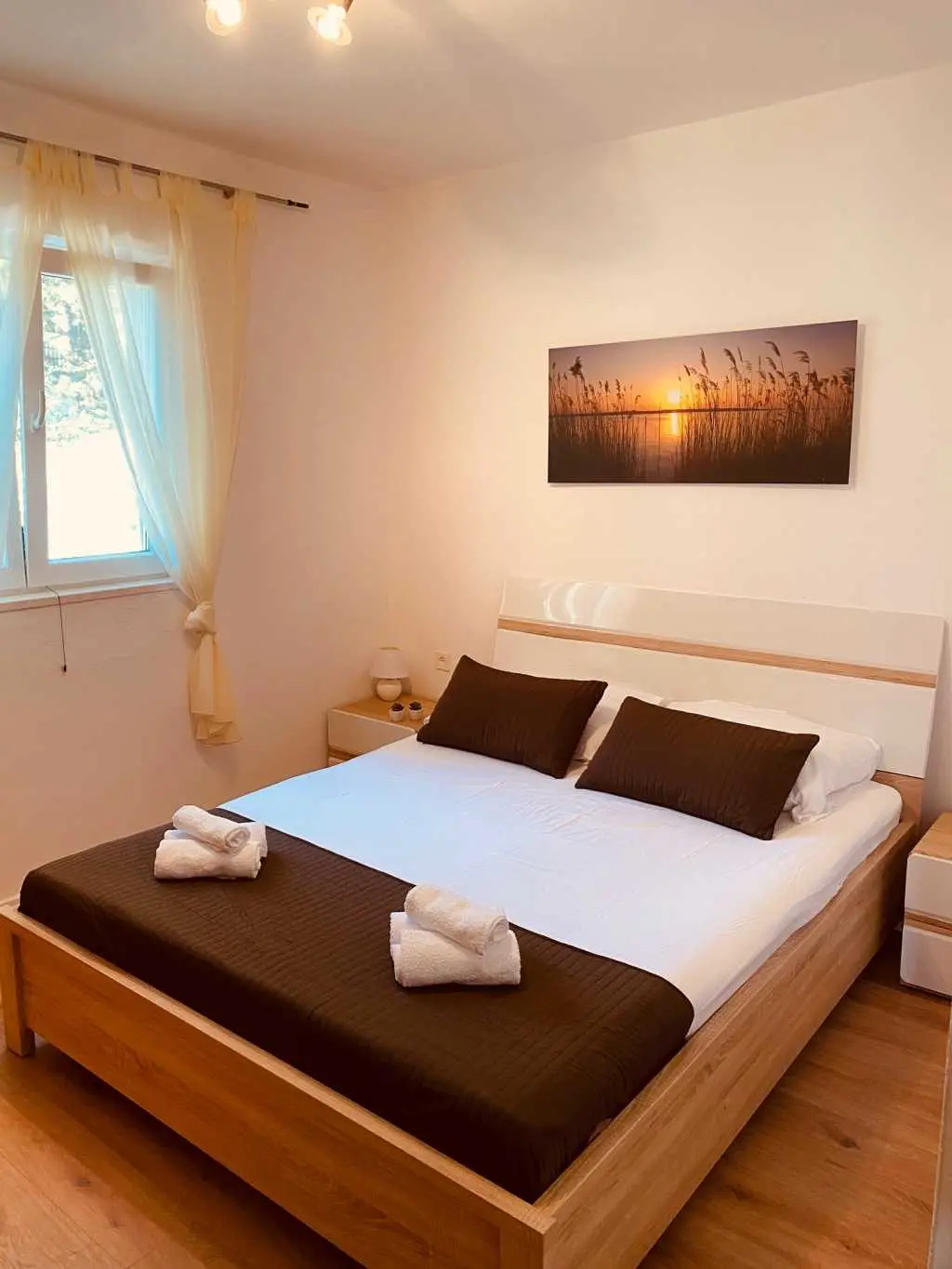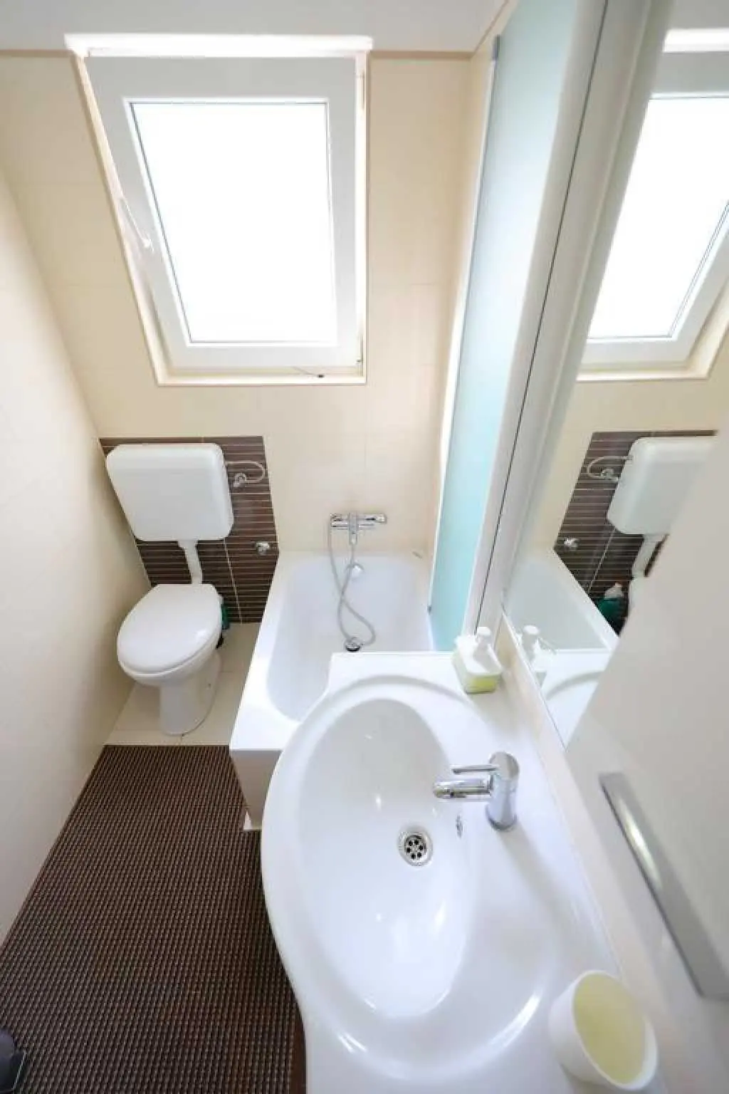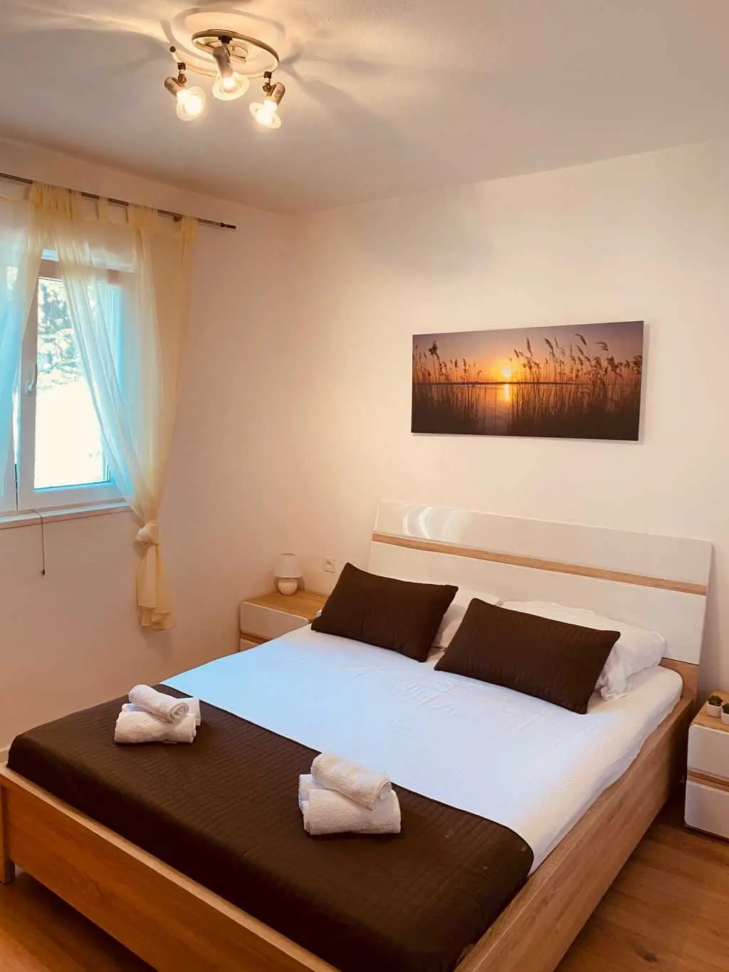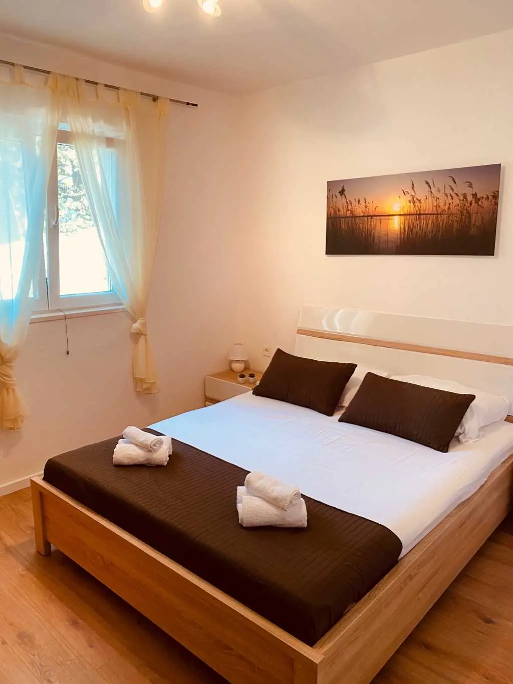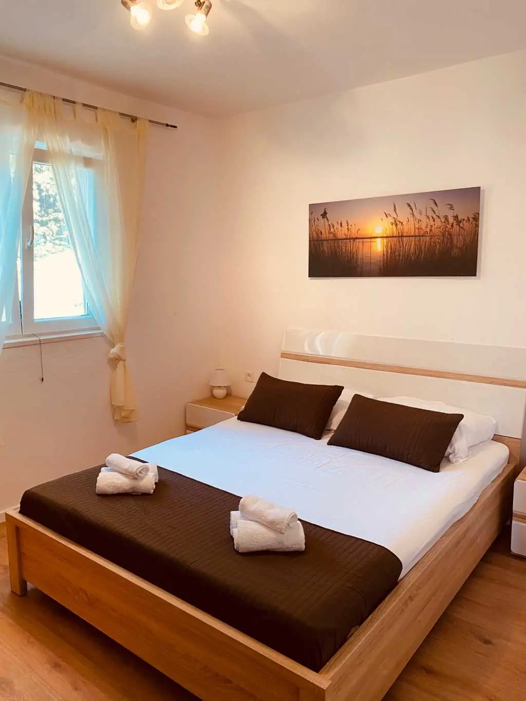Szép és kényelmes apartman, 100m, 3 hálószoba, 2 fürdőszoba, konyha, nagy nappali és tengerre néző terasz. Ideális pihenésre. Wifi ingyenes. Dohányzás megengedett. Háziállat hozható. Második sor a tengertől. Predložite