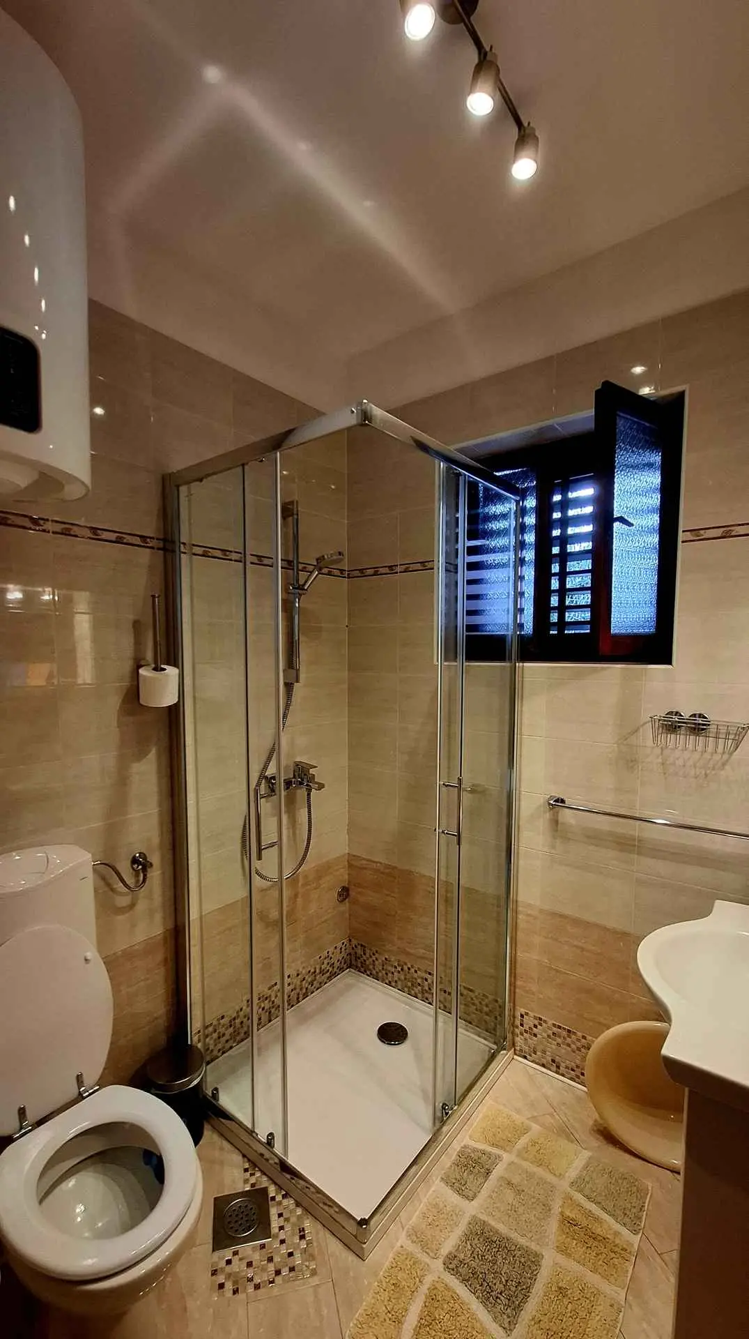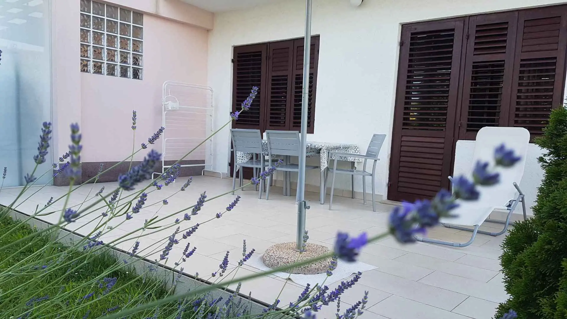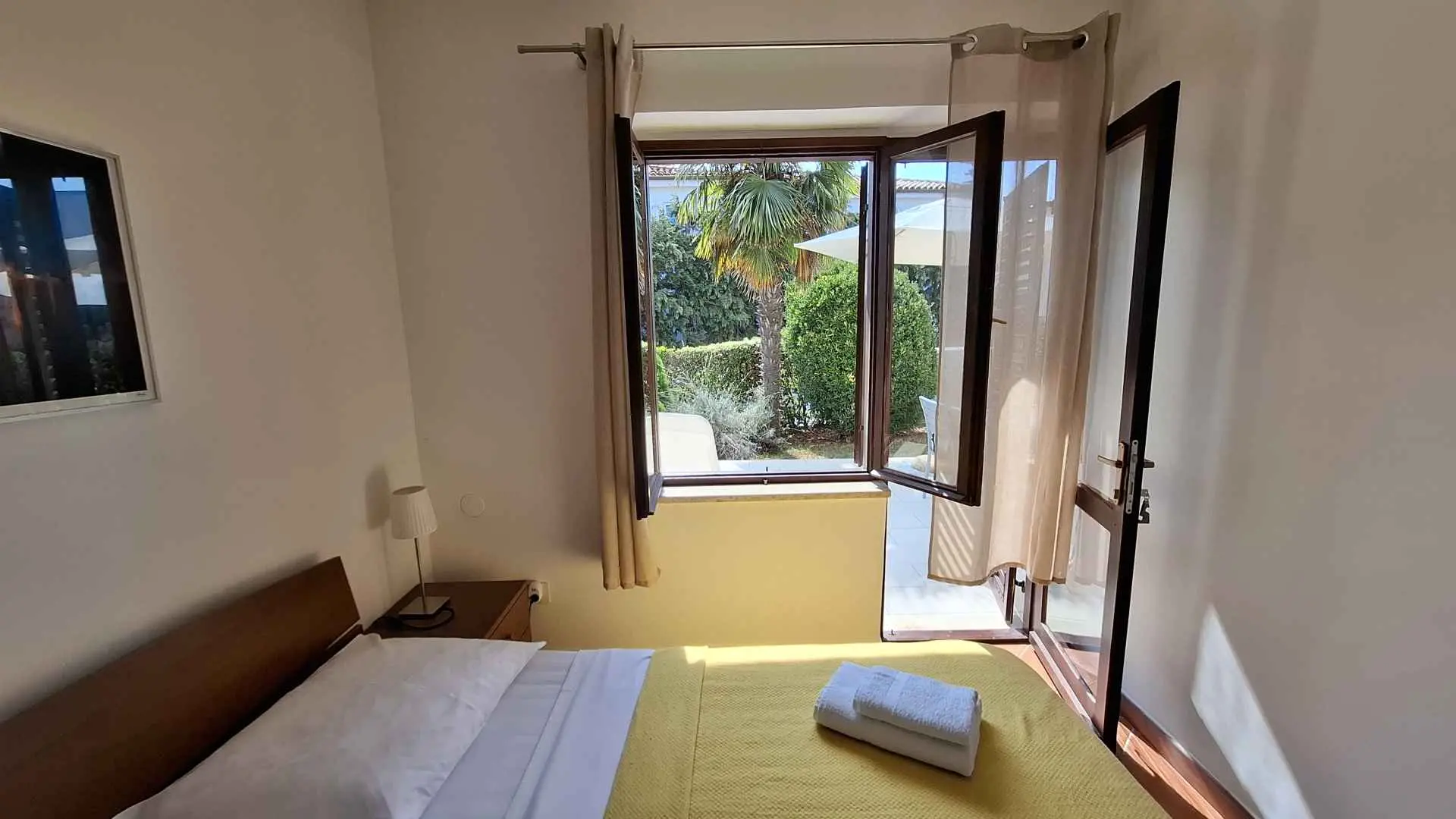 Az apartmanban két hálószoba található, az egyikben franciaágy, a másikban két különálló ágy található. Teljesen felszerelt konyha, légkondicionáló, zuhanyzós fürdőszoba, nagy terasz és kis saját kert található. Az ár tartalmazza az ingyenes privát parkolást egy autó számára, valamint az ingyenes Wi-Fi internet-hozzáférést. Az apartman a második sorban található a strandtól, mindössze tíz perc sétára a történelmi belvárostól, a bevásárlónegyedtől és a szupermarketektől.