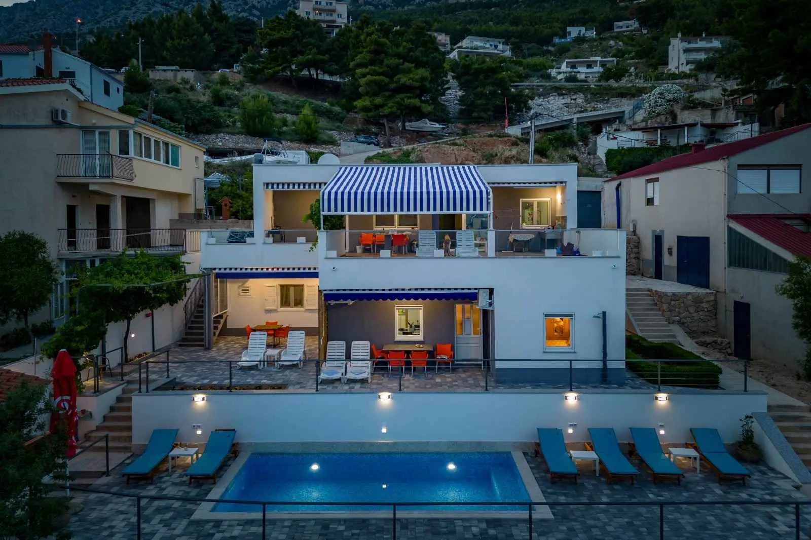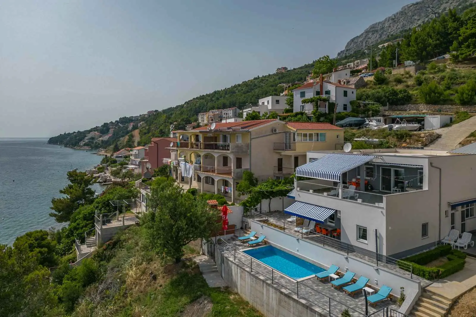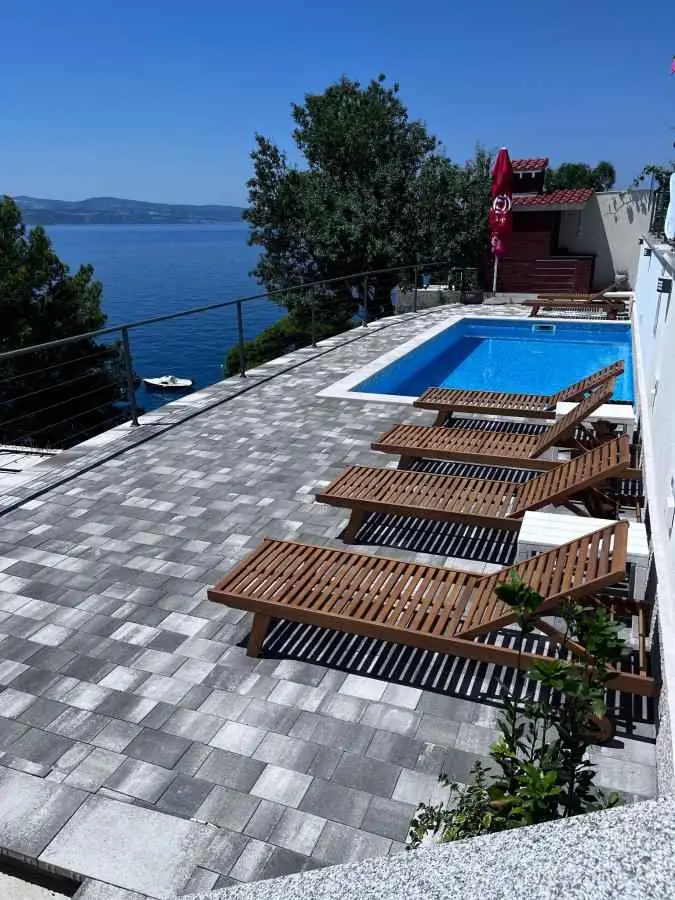 SZEZON ALATT VENDÉGVÁLTOZÁS CSAK VASÁRNAP-VASÁRNAP LEHETSÉGES!AZ ÁRAKÉRT KATTINTSON AZ ÁRLISTA/AZ ÁRAK fix! Villa Sara modern ház újonnan berendezett alkalmazással, Lokva Rogoznica városában, Omistól 6 km-re Makarska felé. A strandtól 20 m-re, csendes környezetben található. Alkalmas egy csendes családi nyaraláshoz, de azoknak is, akik egy kicsit aktívabb nyaralásra vágynak. Teljesen felszerelt, kilátással a tengerre és Brac szigetére. Minden alkalmazás saját bejárattal, valamint saját napozóterasszal és kültéri zuhanyzóval rendelkezik. Parkolóhely a ház felett. Magánút vezet a házhoz :-) A1 45m2: 2 hálószoba, fürdőszoba, nappali fülke, konyha, 3 AC, terasz 20m2 A2 60m2 : 2 hálószoba, 2 fürdőszoba, nappali fülke, konyha, 3 AC, terasz 20 m2 A3 stúdióalkalmazás 40 m2, 1 AC+terasz 50 m2 Tapasztalja meg az egyedülálló légkört a medencénél 7,50 x 3,50 m Fűtött/hűtött, elektrolízisre alkalmas szenvedők) Minden következő személy felár 20€/éj. Bármilyen kérdés esetén készséggel állok rendelkezésére! Üdvözöljük!