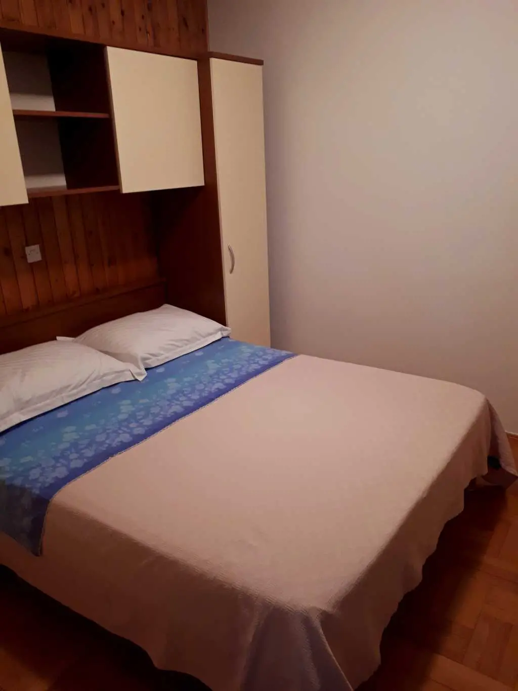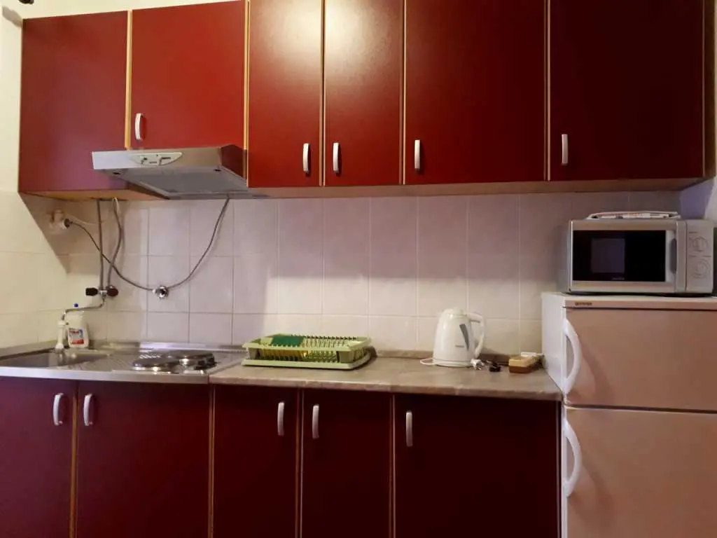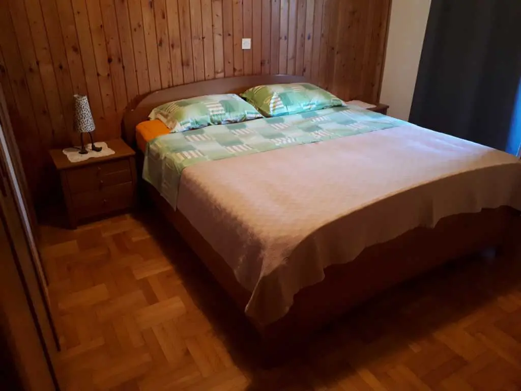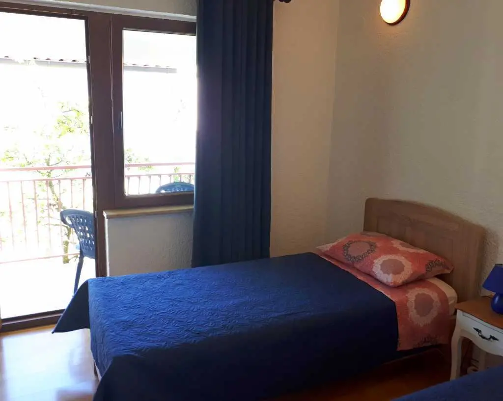 Csendes környezetben bérelek egy lakást Porec közelében a tenger és a városközpont közelében. A ház egy sorban van, és az apartman egy családi ház első emeletén található. A földszinten élő tulajdonosok. Lépéseket kell tenni a lakás eléréséhez. Az apartman nappali konyhával, három hálószoba (két szoba franciaággyal és egy szoba két egyszemélyes ággyal), fürdőszoba, erkély és nagy terasz étkezőasztallal és székekkel. A ház előtt parkoló is található. Lehetőség hosszabb foglalások esetén a gép használatára.