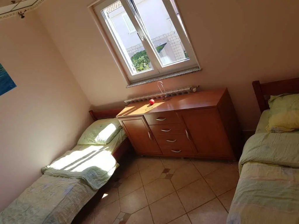 Luxus apartman két hálószoba és egy kanapé, gyerekágy, az első emeleten. Első sorban a homokos tengerpart, távol a központtól 10 perc séta a tengerparton, egy csendesebb részén, a sziget, gyönyörű kilátással. Fel van szerelve két légkondicionáló, a víz gép, műholdas TV-vel. Ingyenes parkolási lehetőség, szabadtéri grill és használata az udvaron. A vendégek kényelmét szolgálja utakat Vir vagy Zadar (Dolphin Reserve, Kornati, Plitvicei-tavak, a Krka ...) A Vir szigete az egész szezonban a település Vir szervez különféle rendezvények, koncertek, akiknek a belépés ingyenes. Gyönyörű strandok.