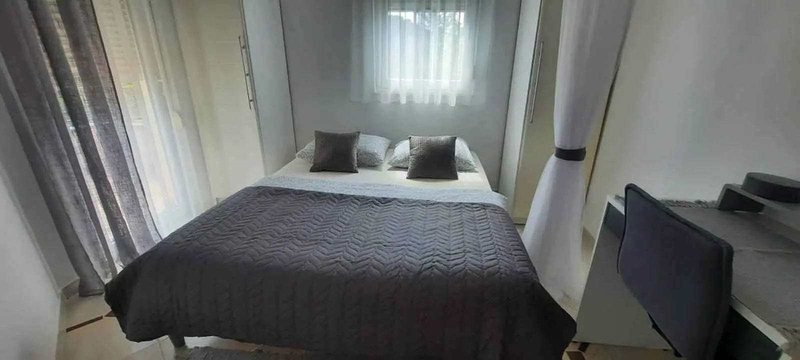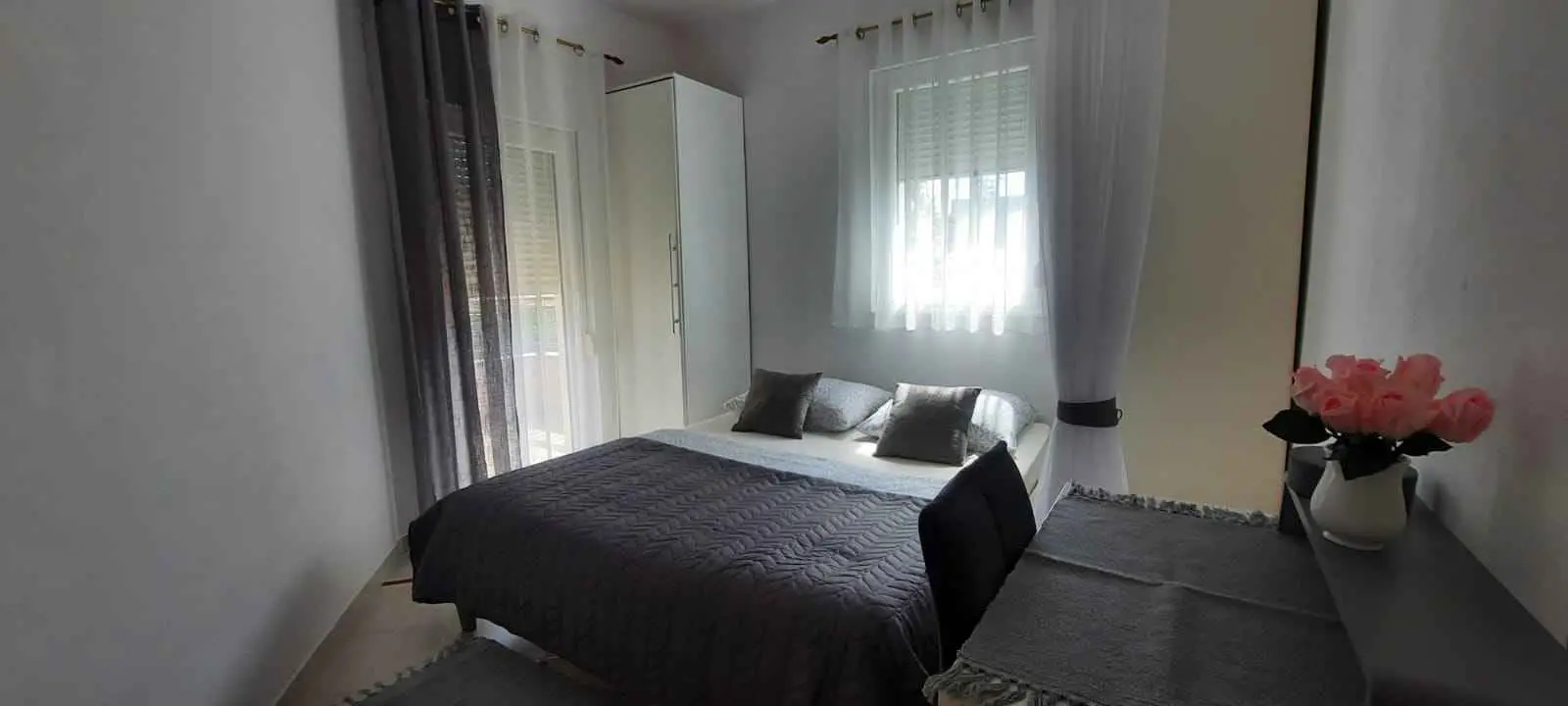 Zadarban egy ház első emelete: 2 szoba + nappali. nappali, 3 terasz, 4-6 fő részére, klíma, 3 kerékpár, grill/sütő, parkoló. 1.6-tól ingyenes. Foglalásért és további információkért. felveszi a kapcsolatot. Távolság a strandtól kb. 2 km. Csendes városrész.