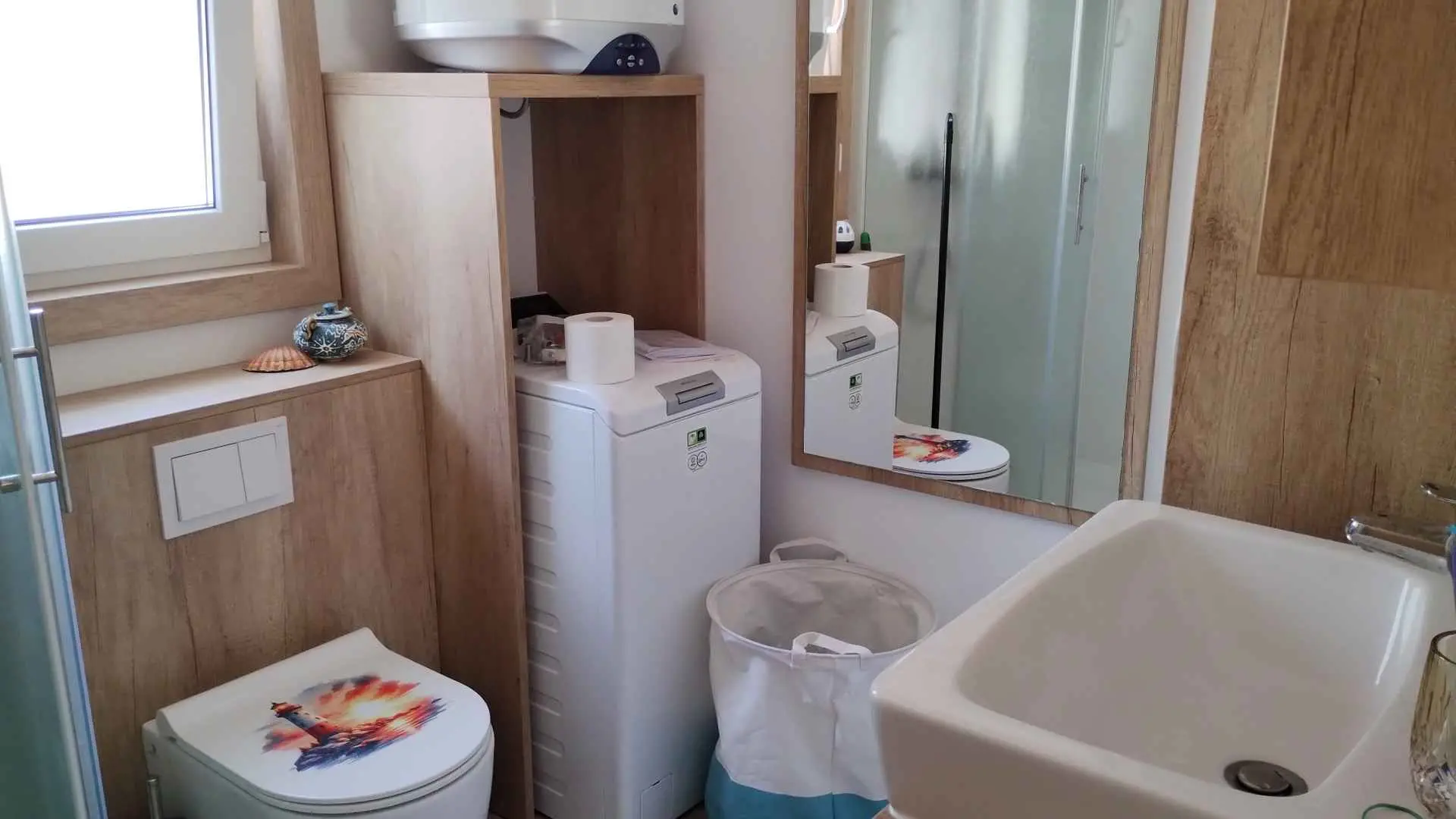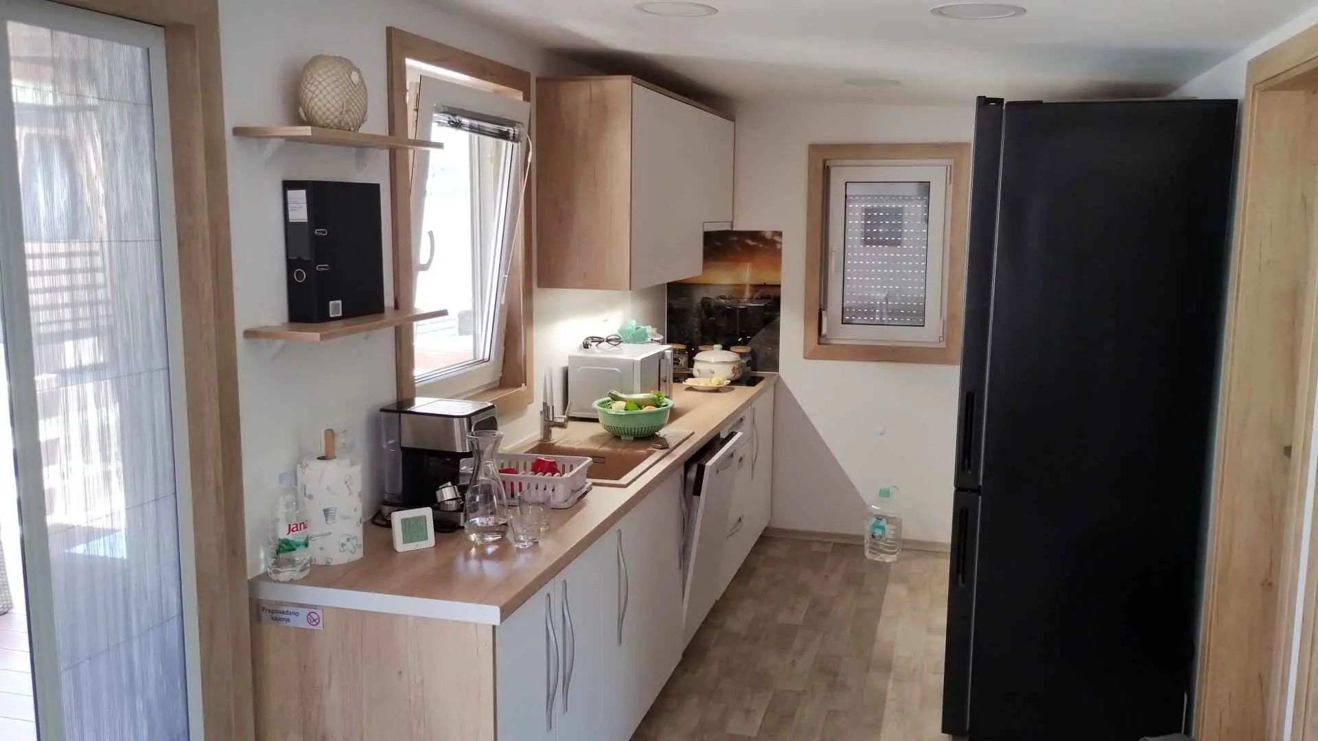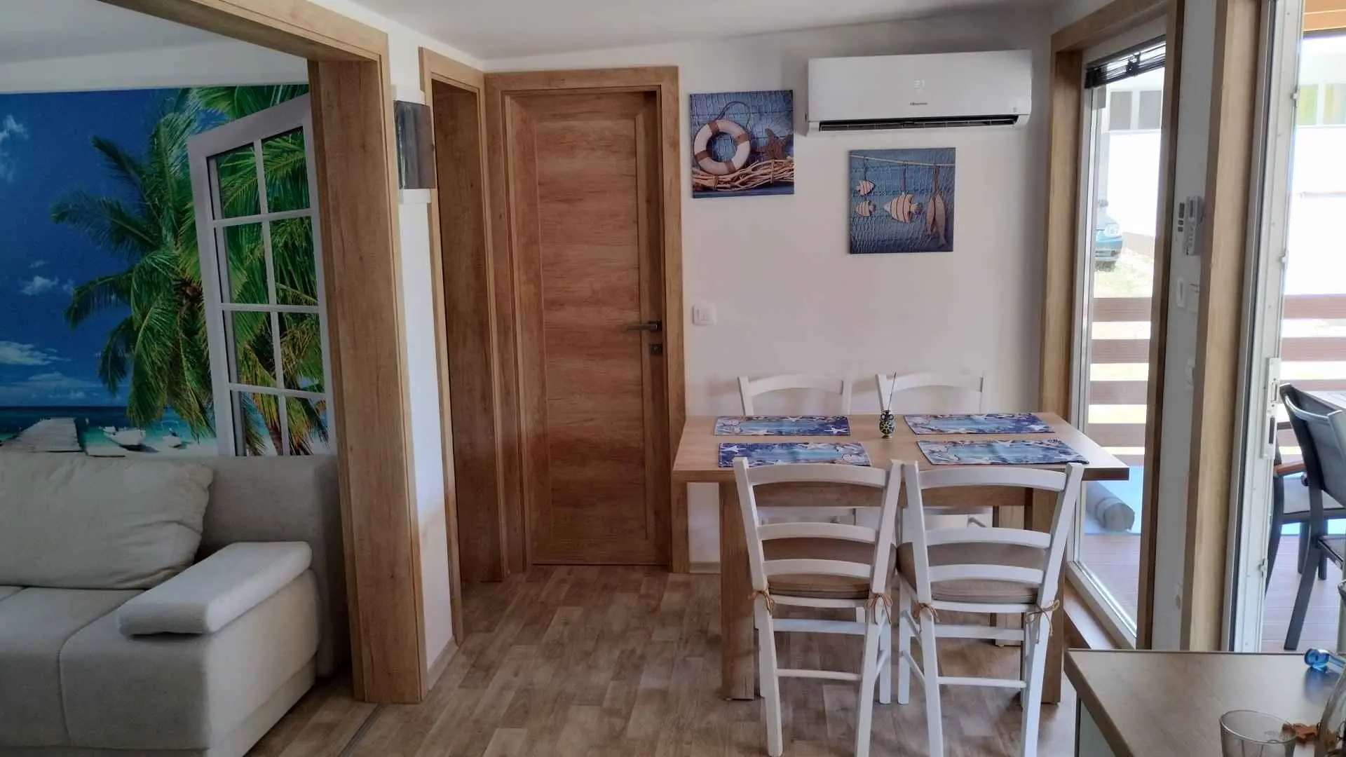 🌞 SUNRISE WELLBEING mobilház - Tudatos, vegetáriánus és aktív pihenés - mindössze 35 méterre a tengertől Üdvözöljük a Sunrise Wellbeing mobilházban, amely tudatos, vegetáriánus és aktív pihenésre vágyik, mindössze 35 méterre a tengertől. Egy kis családi kempingben található, amely négy ilyen házból áll - mindössze néhány lépésre a strandtól és a tengerparti sétánytól. Öblökkel, kis strandokkal, sétautakkal, kerékpárutakkal és a közeli érintetlen természettel körülvéve ez a ház többet kínál, mint pusztán nyaralást - lehetőséget kínál a test, az elme és a lélek újjáélesztésére egy támogató környezetben. 🌿 Ami itt vár rád 🌌 Tér, a tér energiája és a valódi értékekkel és erényekkel összhangban lévő és azokkal összhangban lévő kapcsolatok: alázat, béke, erőszakmentesség, tisztaság, szeretet, jóság, hála, irgalom, őszinteség, tolerancia, igazmondás, bölcsesség, becsületesség, igazságosság, odaadás, szolgálat, segítés, adakozás, szelídség, önzetlenség, nyugalom, egyszerűség, szerénység, ragyogás, öröm, harmónia, elszántság, távolságtartás, bátorság... Azok lábnyomai, akik már jártak itt. Tanárok nélkül, vezetők nélkül, külső befolyás nélkül. Egy üres papírlap – egy lehetőség... Ha szeretnéd, amíg itt vagy, válassz egy erényt – és éld meg. Vegetáriánus konyha (hús és hal nélkül), szakácskönyvekkel és egyszerű, egészséges vegetáriánus ételekre vonatkozó ajánlásokkal felszerelve – fűszerekkel és alapvető hozzávalókkal feltöltve. Ha szeretnéd, nyugodtan írd le kézzel és osszd meg saját receptjeidet és tapasztalataidat. 🍱 Ha ez nagy kihívást jelent számodra, és nincs előzetes tapasztalatod, tudunk adni neked néhány kész, gyárilag csomagolt vegetáriánus ételt. 🏡 A Sunrise Wellbeing mobilház különlegességei • Teljes lakóterület terasszal együtt: 67m² — két hálószoba dupla ággyal, nappali kihúzható kanapéval (140 cm széles), tágas új konyha gépekkel és több mint 3 méteres szekrényekkel, zárt üveg étkező, fürdőszoba mosógéppel, két légkondicionálóval, kb. 27m² fedett terasz két ülőgarnitúrával (akár 10 fő részére), és egy sarok mozgáshoz vagy meditációhoz • Befogadóképesség: legfeljebb 6 fő, gyermekekkel együtt, max. 5 felnőtt • Ingyenes parkolóhely közvetlenül a mobilház mellett 🌅 Környezet és szolgáltatások • Strandok 50–100 m-re, tamariszkfák árnyékában, általában nem zsúfoltak • Biztosított felszerelés: SUP deszka, ütők, labdák, társasjátékok, kirakós játékok, ceruzák, színes filctollak, sablonok • Játszótér mindössze 200 m-re • 8 km-es tengerparti sétány, néhány lépésre a mobilháztól • Hosszú kavicsos kerékpárutak évszázados olajfaligeteken és szőlőültetvényeken keresztül • Oštrica-félsziget (2–3 km-re) — 10 km érintetlen tengerpart kristálytiszta tengerrel, strandokkal, fenyvesekkel és mediterrán bozótossal • Természetes tenger alatti forrás a közelben — a tenger kevésbé sós és mentes a tengeri sünöktől, Kanela édesvízi forrás — 1 km-re a szárazföld belsejében • Többnyire környezetbarát tisztító- és higiéniai termékek biztosítottak (mosáshoz, takarításhoz és fürdéshez) 📖 Házirend — Tartsa tiszteletben a hely energiáját • Csendes órák: 22:00 – 7:00 • Dohányzásmentes hely - beltéren és a teraszon is • A konyha vegetáriánus - hús és hal fogyasztása tilos • Tartsa tisztán és rendben a helyiséget és a készülékeket - Kérjük, hagyja őket úgy, ahogy találta. A törölközőket, ruhákat és ágyneműt hetente vagy kérésre cseréljük, amikor szükséges • Háziállatok nem alkalmasak a helyiség mérete, célja és elrendezése miatt • A fenntarthatóság fontos: • A hulladékot megfelelően válogatja (műanyag, papír, bio és vegyes) • Használjon környezetbarát higiéniai termékeket • Takarékoskodjon az erőforrásokkal (víz, áram)