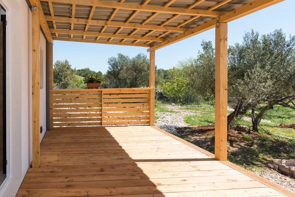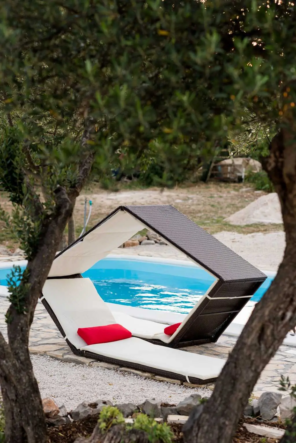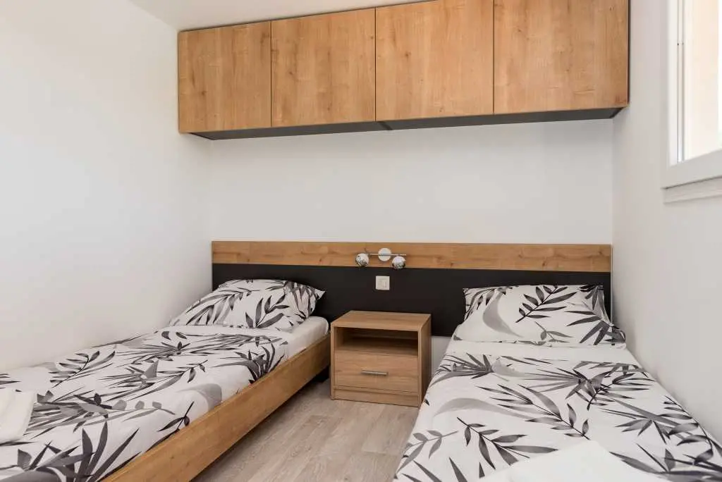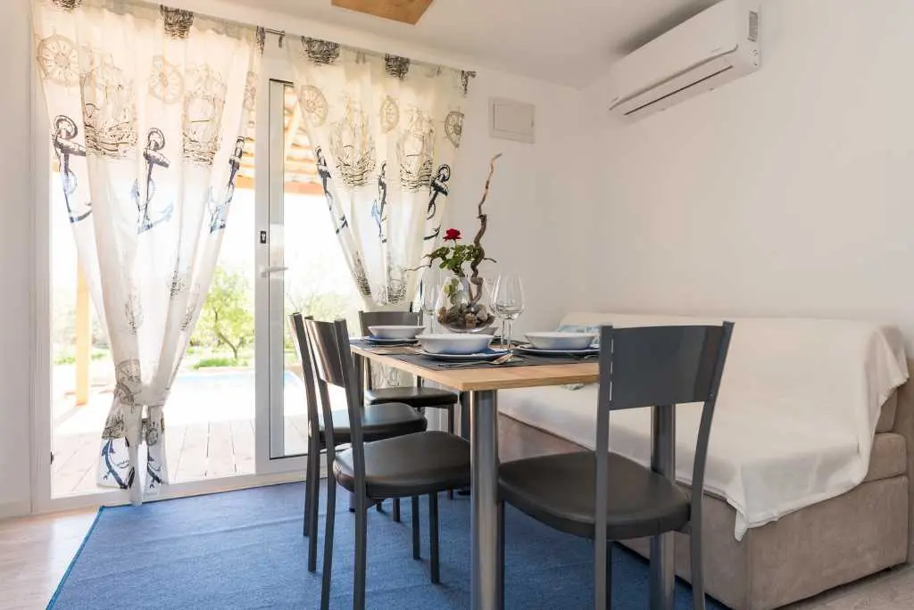 Autentikus kemping Dalmácia egy tábor található, Dalmácia szívében Pirovac. A tábor ideális azok számára, akik stresszmentes nyugodt vakációra vágynak, és kellemes mediterrán éghajlat olyan, ami biztosan illeszkedik a közeli mediterrán növények és fenyők illataival. A táborban van egy mobilház, három kempingező kemping, egy úszómedence és egy szabadtéri egészségügyi létesítmény. A mobilházat olajfák veszik körül, és biztosan szép és kényelmes lesz a vakáció. A mobilház két hálószobával rendelkezik (egy franciaággyal, a másik két egyszemélyes ággyal), és két fürdőszoba, nappali és konyha. A ház légkondicionált. SAT-TV és internet áll a vendégek rendelkezésére. A ház fedett fából készült terasszal is rendelkezik. Frissítse a forró nyári napokon a tábor közepén található medencében. A legfiatalabb játékos játszhat szórakozást és gondtalanul a gyerekek játszótérén. Ha adrenalinra, szórakozásra és sportra vágysz, röplabdázhatsz a vízen. Várjuk az érkezésedet