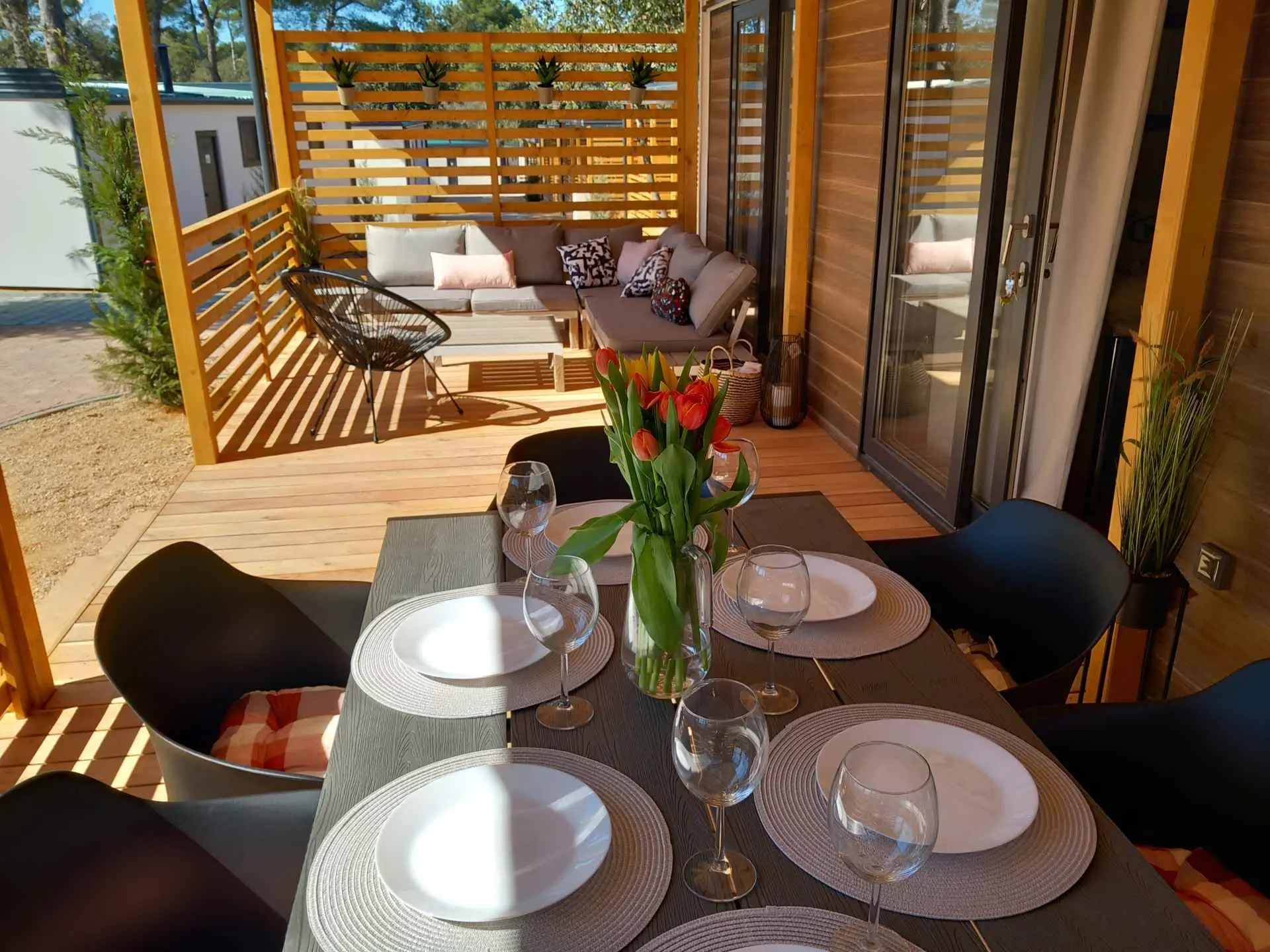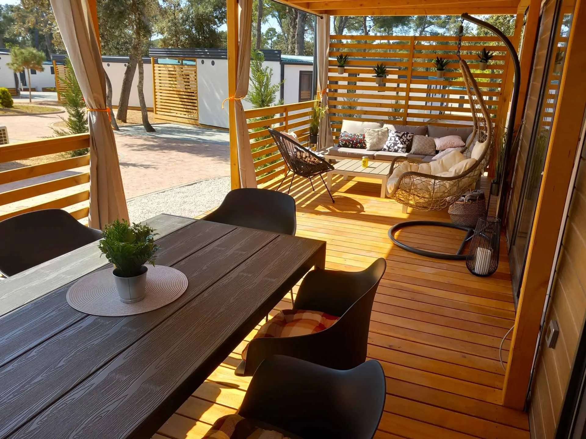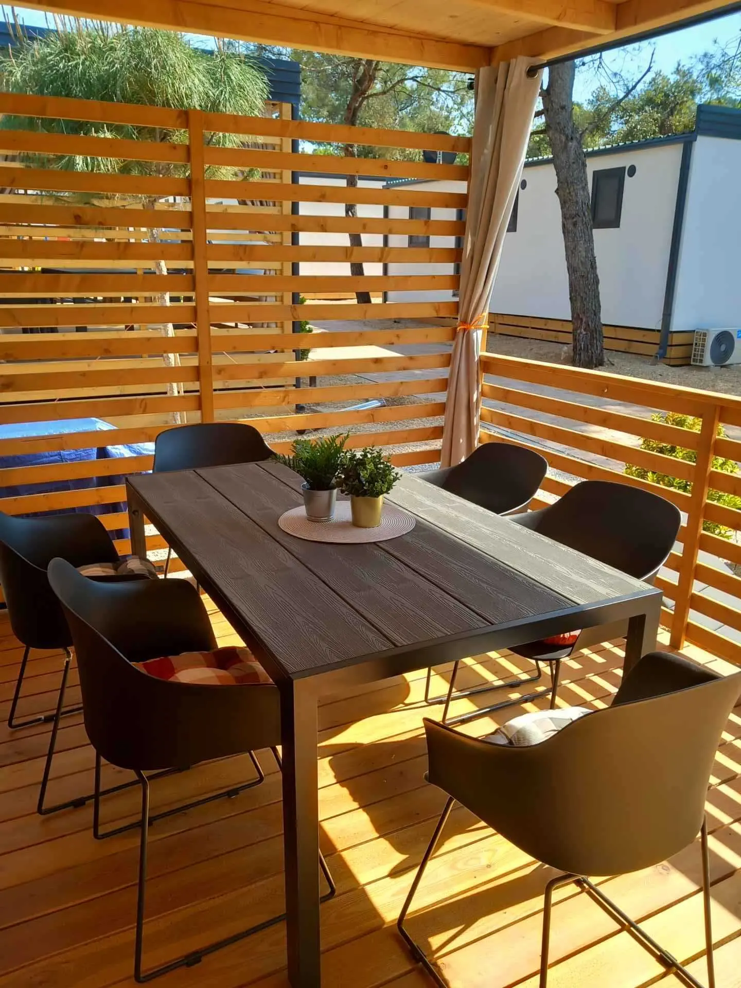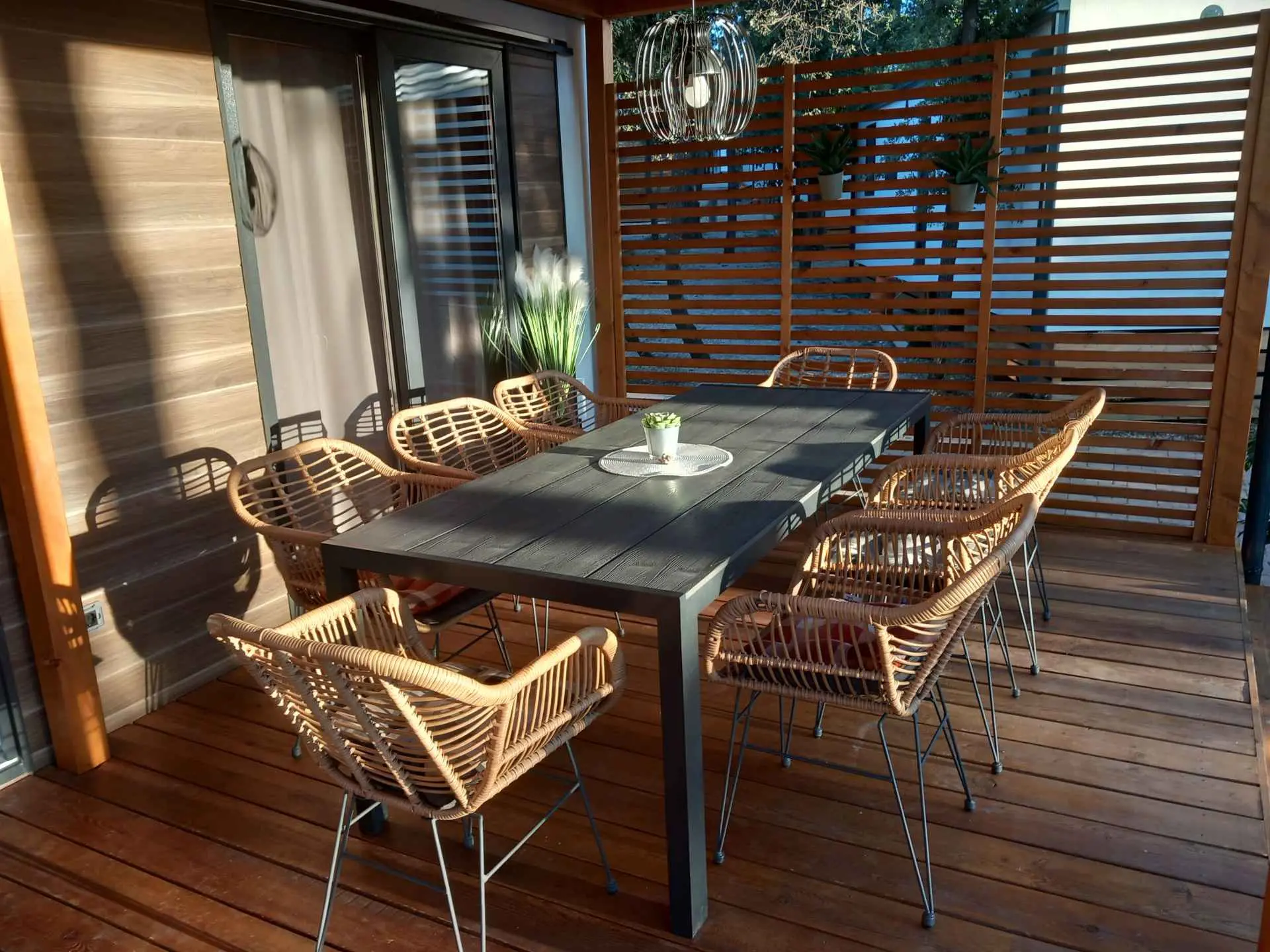 Az AnaMari mobilházak új, fényűző házak a Biograd na moru-i Park Soline tábor új, csendes részén. A 6+2 (42 m2 + 30 m2 terasz) és 4+2 (34 m2 + 24 m2 terasz) modern berendezésű házakban minden megtalálható, ami egy kellemes nyaraláshoz kell. A 6+2 mobilházban 3 hálószoba, 2 fürdőszoba, felszerelt konyha mosogatógéppel, 2 klímaberendezés, nagy terasz 8 személyes asztallal és nappali bútorokkal, grillezővel, napelemes zuhanyzóval, nyugágyakkal és 1 saját parkolóhellyel rendelkezik. . A 4+2-es házban 2 hálószoba, 2 fürdőszoba, felszerelt konyha mosogatógéppel, terasz 6 személyes asztallal és társalgóval, grillezővel, nyugágyakkal és 1 saját parkolóhellyel rendelkezik. A házak közelében találhatók Soline, Dražice, Bošana strandjai, Kornati kikötője és két természeti park - a Vrana-tó és a Telašćica-tó.
