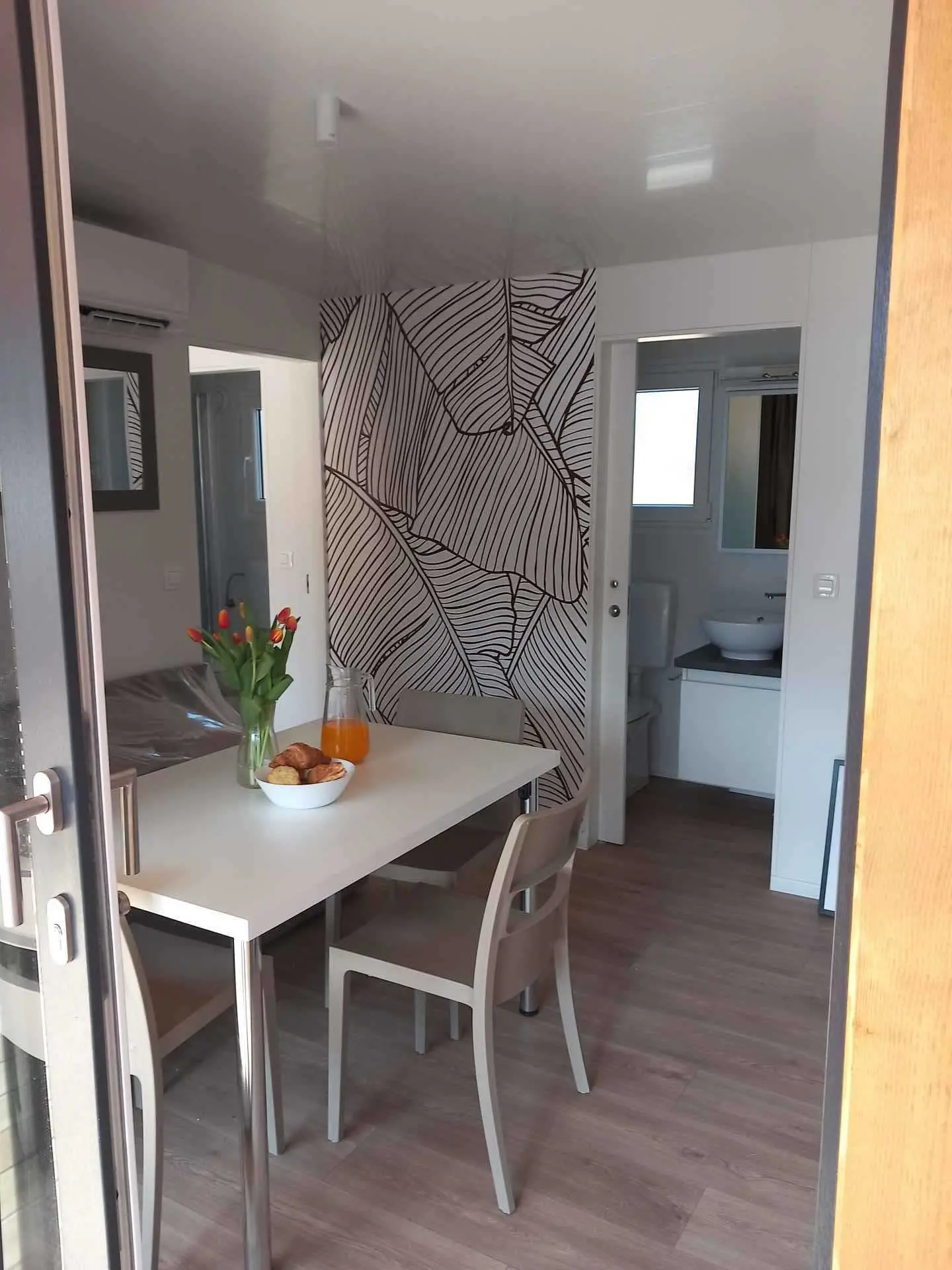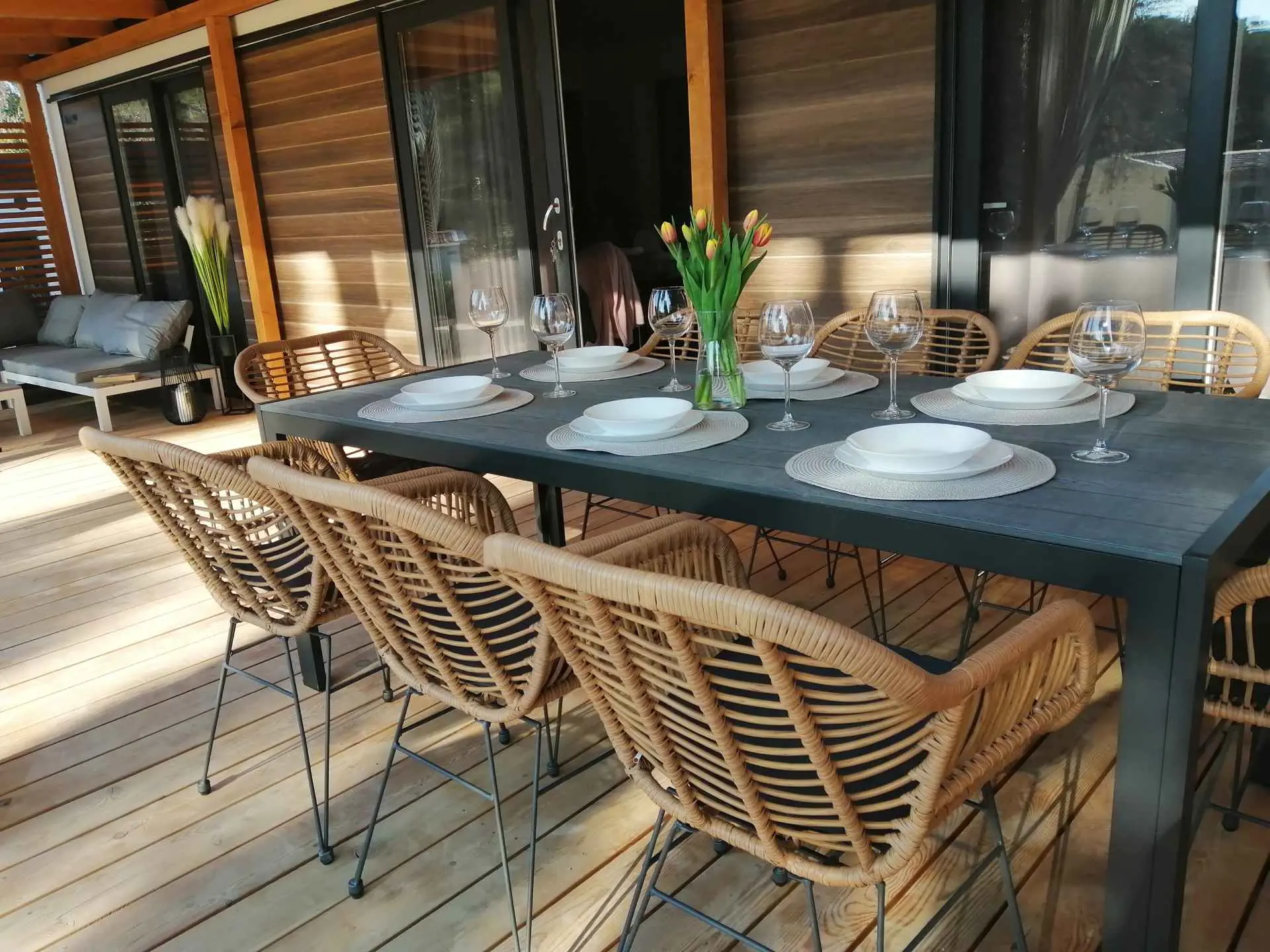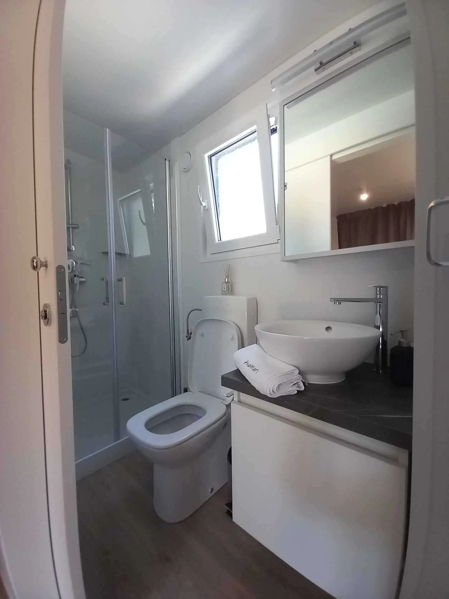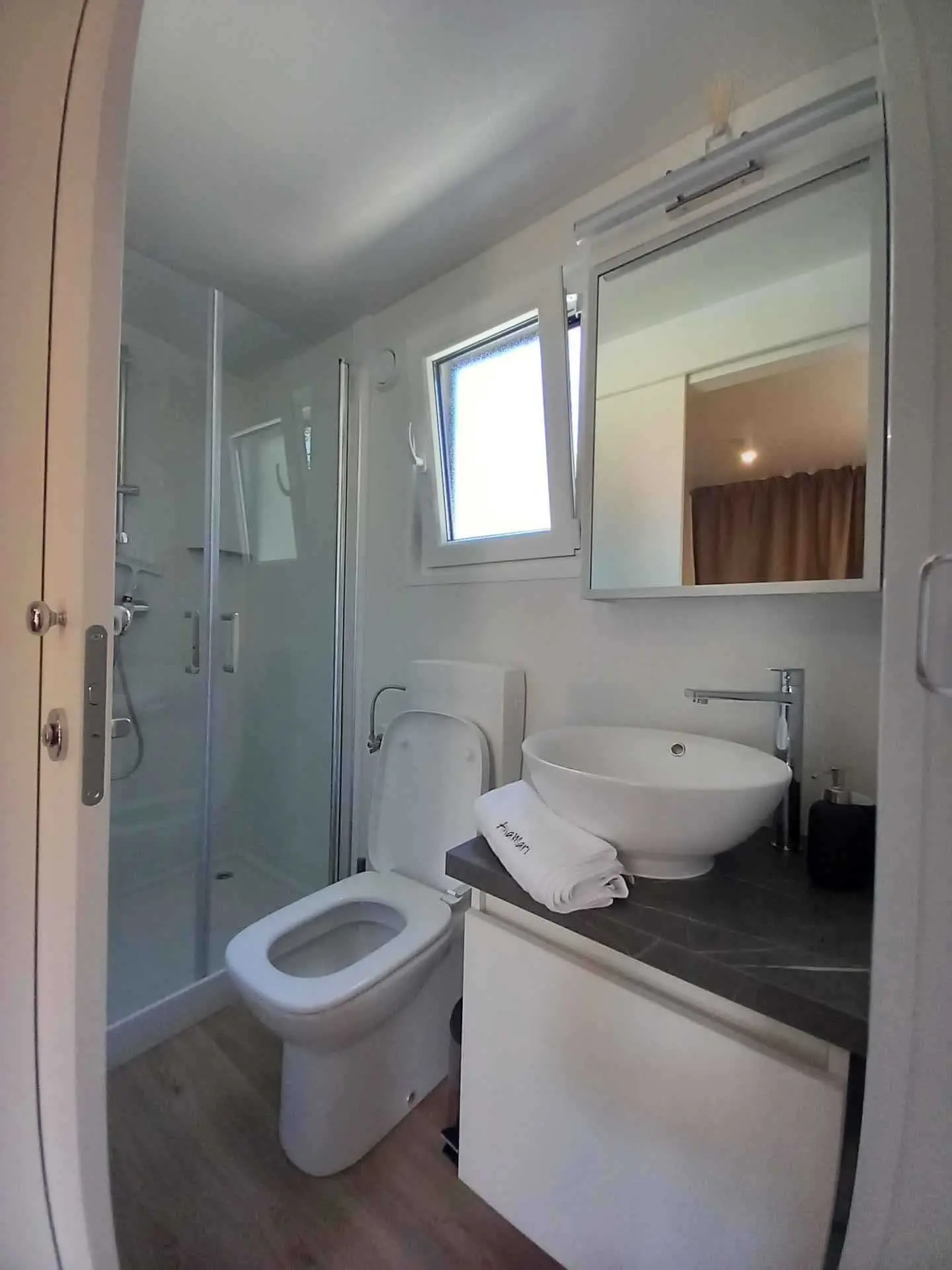 Az AnaMari mobilházak új, fényűző házak a Biograd na moru-i Park Soline tábor új, csendes részén. A 6+2 (42 m2 + 30 m2 terasz) és 4+2 (34 m2 + 24 m2 terasz) modern berendezésű házakban minden megtalálható, ami egy kellemes nyaraláshoz kell. A 6+2 mobilházban 3 hálószoba, 2 fürdőszoba, felszerelt konyha mosogatógéppel, 2 klímaberendezés, nagy terasz 8 személyes asztallal és nappali bútorokkal, grillezővel, napelemes zuhanyzóval, nyugágyakkal és 1 saját parkolóhellyel rendelkezik. . A 4+2-es házban 2 hálószoba, 2 fürdőszoba, felszerelt konyha mosogatógéppel, terasz 6 személyes asztallal és társalgóval, grillezővel, nyugágyakkal és 1 saját parkolóhellyel rendelkezik. A házak közelében találhatók Soline, Dražice, Bošana strandjai, Kornati kikötője és két természeti park - a Vrana-tó és a Telašćica-tó.
