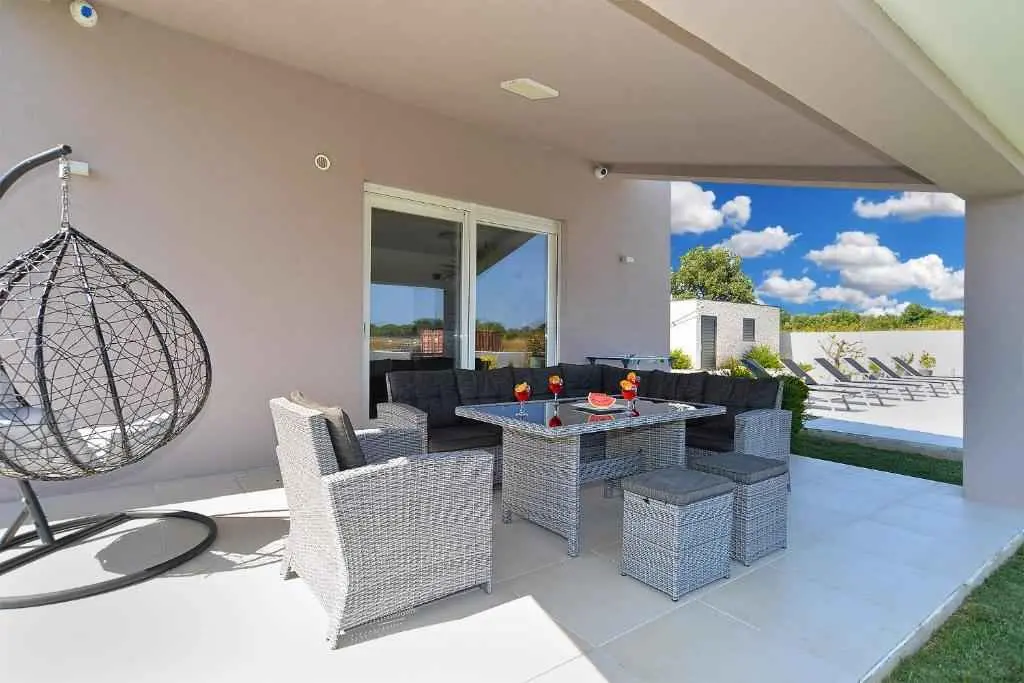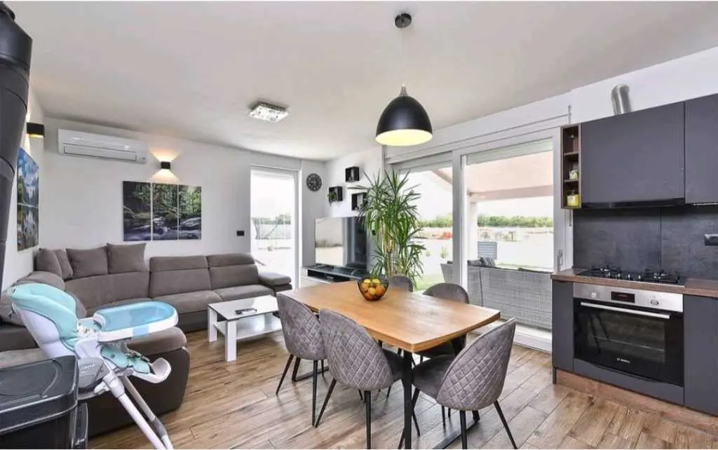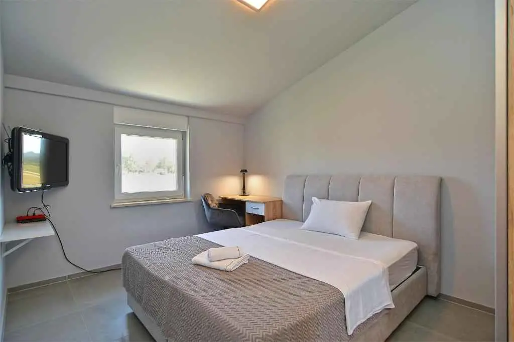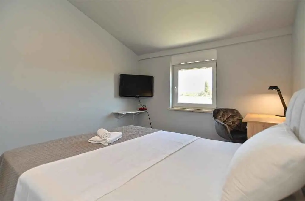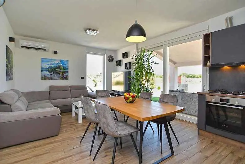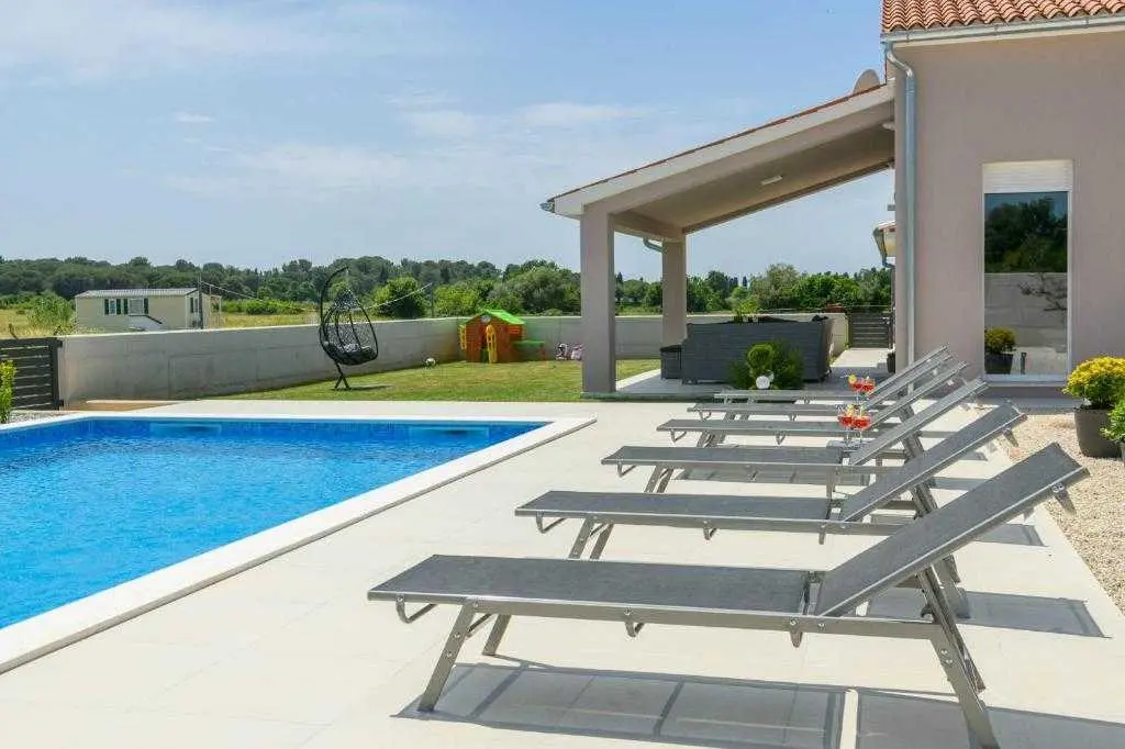Az Ana nyaralóház az isztriai Fazana híres turistavárosában található. "Fažanában" szinte minden elérhető gyalogos távolságból. Az Ana nyaraló teljesen a földszinten található. Tartalmaz egy konyhát, nappalit, 3 hálószobát és 2 fürdőszobát. A házhoz saját bekerített udvar tartozik saját medencével, terasszal kerti bútorokkal, szabadtéri asztallal székekkel és grillezővel. Az udvarban 5 parkolóhely található (2 fedett). Az ajánlat légkondicionált szállást, műholdas TV-t és ingyenes Wi-Fi-t tartalmaz. A "Plodine" szupermarket 850 m-re található otthontól. A közelben számos étterem található. Néhány közülük a "Jedro" étterem (550 m), az "Arboretum Pub" (950 m), a "Feral" taverna (1,2 km) és a "Batana" étterem (1,4 km). Fazana közelében található a leghíresebb horvát „Brijuni” Nemzeti Park. A hajóval csak Brijuni szigetén lehet vitorlázni. A helyi hajótársaság naponta legalább 10-szer hajózik. Amikor megérkezik a Brijuni Nemzeti Parkba, sétálhat, láthat zebrát, sántákat és kecskéket a Safari Parkban, megtekintheti a római ókori kultúra maradványait és a dinoszauruszlenyomatokat. A kalandok szerelmesei számára 1 km-re található a "Jangalooz" adrenalin park, ahol minden korosztályhoz igazodó tevékenységeket élvezhetnek. A szálláson kívül 200 m-re van egy kereskedelmi tanya lovakkal. A vendégek saját megállapodásuk szerint fizethetnek egy lovasoktatónak, és lovagolhatnak. Az Ön ingatlanát érintetlen természet és sok zöld öleli körül.