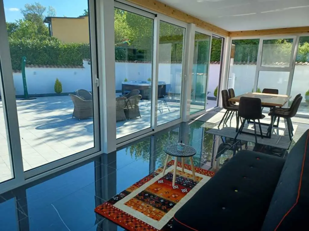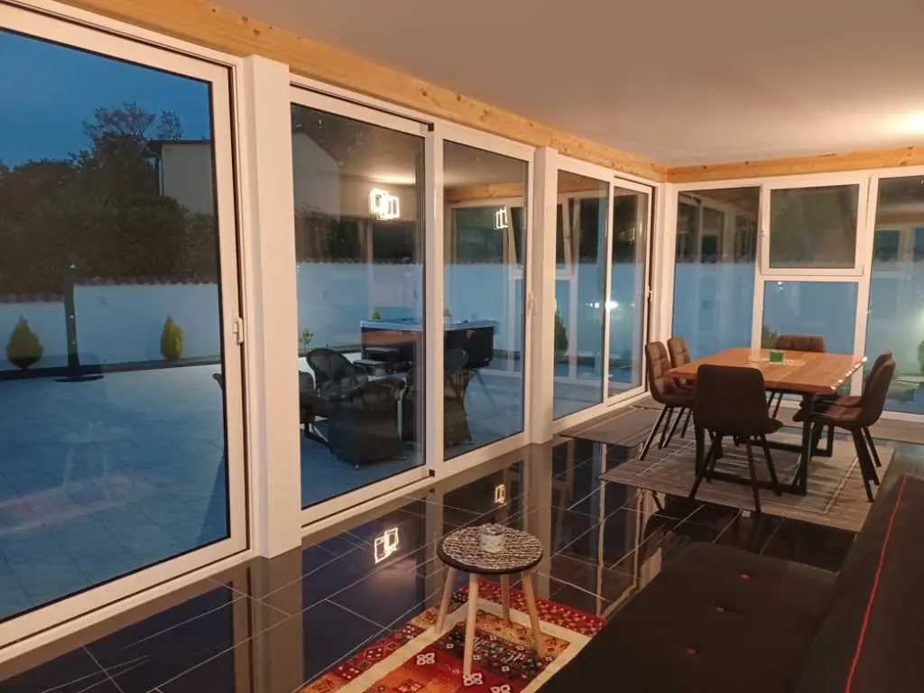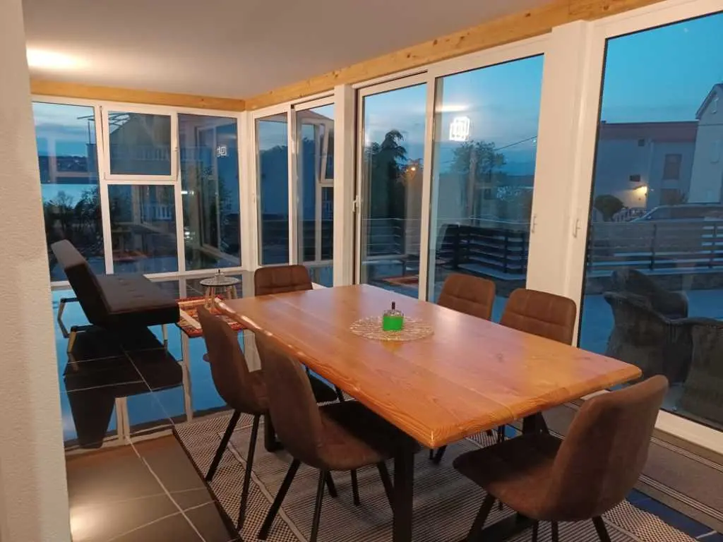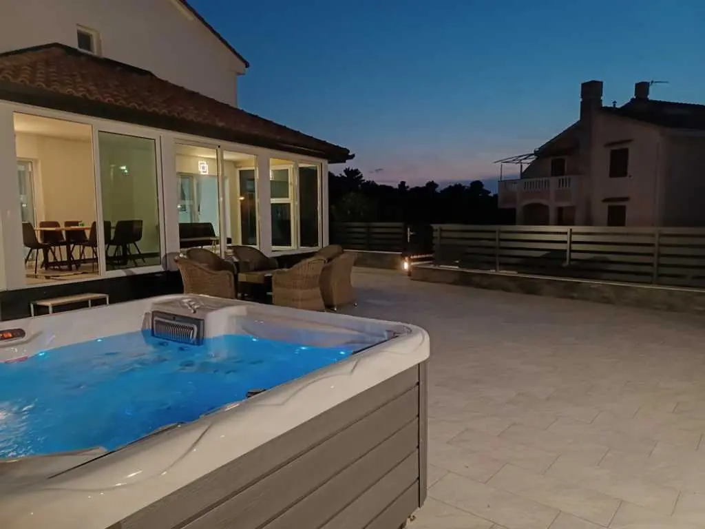 A nyaraló Klimnóban található, Krk szigetének keleti oldalán, mindössze 10 percnyi autóútra a Krk hídtól. A régi turisztikai hagyományokkal rendelkező Klimno gazdag vendéglátási kínálatáról híres éttermekben, amelyek tenger gyümölcseit és egyéb különlegességeket kínálnak a kötelező őshonos borral, apartmanokkal és privát villákkal. 100 méterre a strandtól, egy csendes helyen, Klimnóban, Krk szigetén található egy 200 m2-es luxus 5 *-os ház 6 személyes nagy pezsgőfürdővel, napozóterasszal és kerttel. Idén, ha szeretne megengedni magának egy vakációt teljes magányban, egy kis luxussal és közel a tengerhez, válassza ezt a nyaralót, amelyben minden megtalálható, ami egy kellemes és gondtalan tartózkodáshoz szükséges. Az emeleten 3 db kétágyas hálószoba található saját fürdőszobával, televízióval, és minden szobához erkély is tartozik. Kezdje a reggelt a napsütötte öbölre néző kilátással. A földszinten egy modern konyha és nappali található, melyből egy gyönyörű fedett üvegteraszra és kültérre nyílik kilátás. Napsütéses délben és szép estéken keressen felfrissülést a hidromasszázs medencében, védve a kíváncsi szemek elől. Az egész ház légkondicionált, ingyenes Wi-Fi. Parkolás a ház mellett található. A nyaraló a Melina gyógyfürdő (gyógyiszap) strand közelében található Čižićiben.
