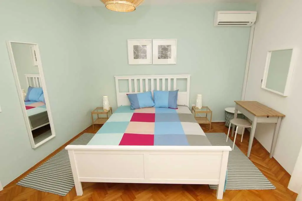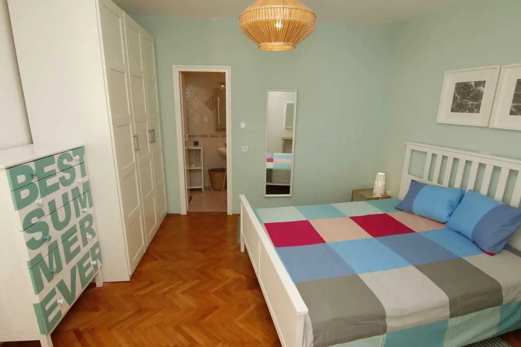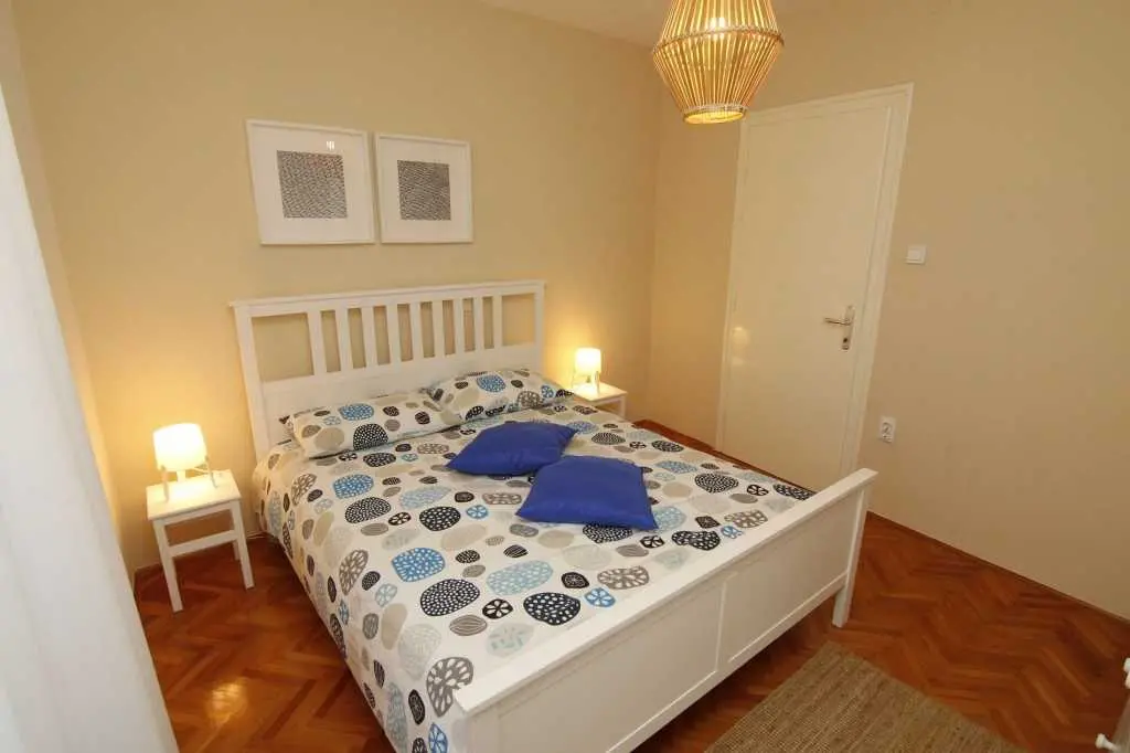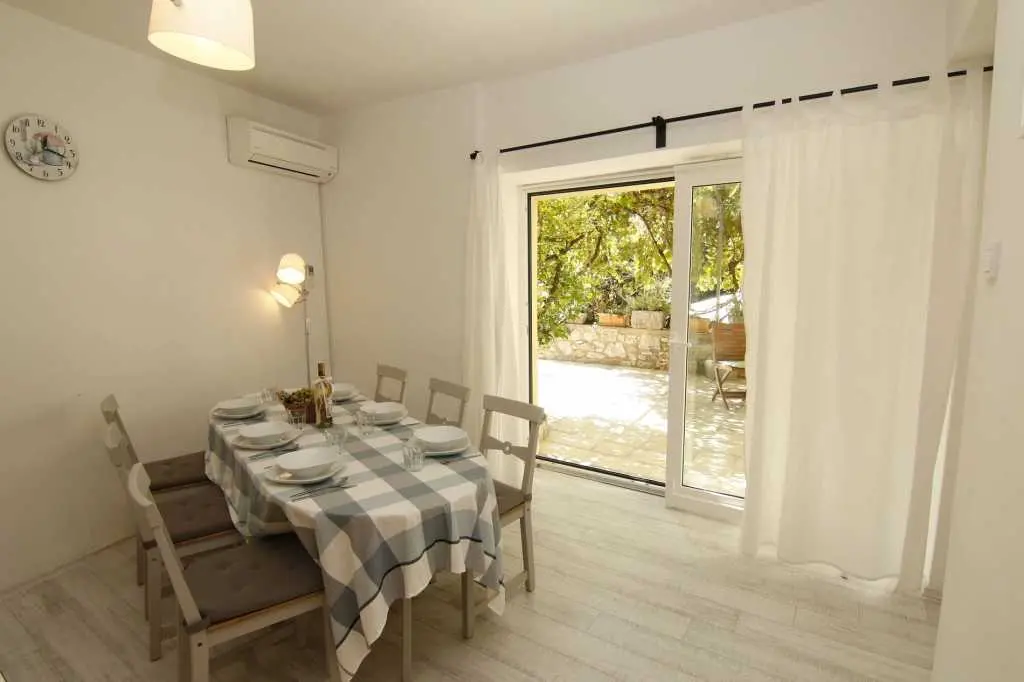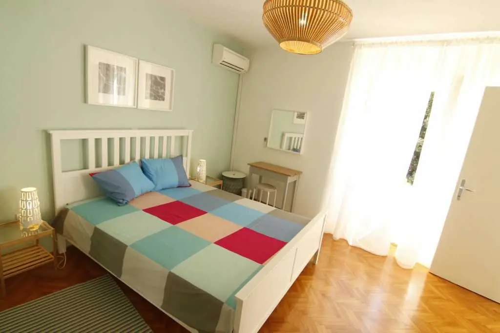 A Pacifico nyaraló zöldövezetben található, a városfalak alatt, körülbelül 70 méterre a tengertől és a strandtól. A modern és kellemes belső tér és a nyugodt környezet pihentető légkört kínál, ideális egy családi nyaraláshoz. A nyaralóban 2 hálószoba franciaággyal, nappali 2 pótággyal, jól felszerelt konyha és étkező, valamint két fürdőszoba található. A szőlő árnyékában található terasz csodálatos pihentető pillanatokat biztosít napközben vagy nyári estéken. A strand, az óváros központja és minden egyéb létesítmény könnyen elérhető, mint például éttermek, kávézók, posta, üzletek és ajándékboltok, gyógyszertár, galériák, buszpályaudvar. A házon belül ingyenes fedett saját parkoló 2 jármű számára biztosított. A közeli strandok különféle szabadidős és sportolási lehetőségeket kínálnak. Háziállat bevihető, de tartózkodásuk felár ellenében lehetséges! Üdvözöljük Krk városában!